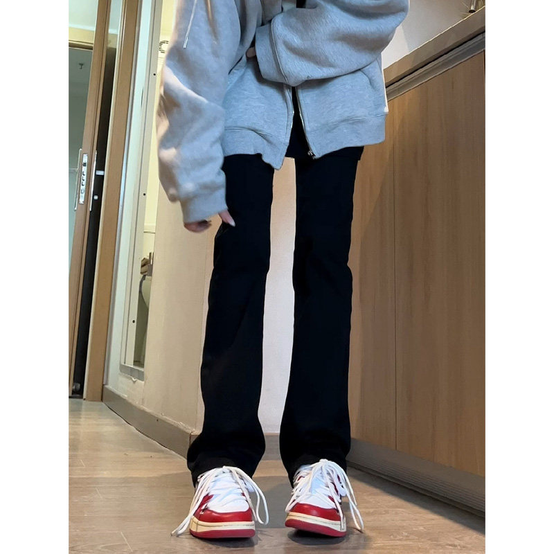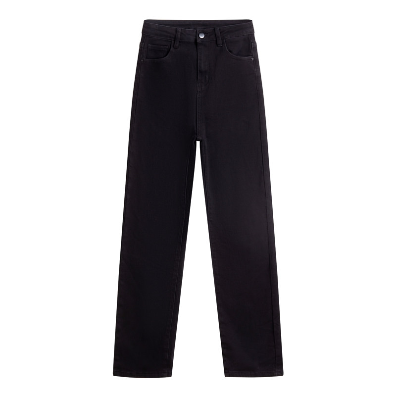 Черные осенние джинсы, демисезонные штаны, свободный прямой крой, большой размер, подходит для подростков, высокая талия