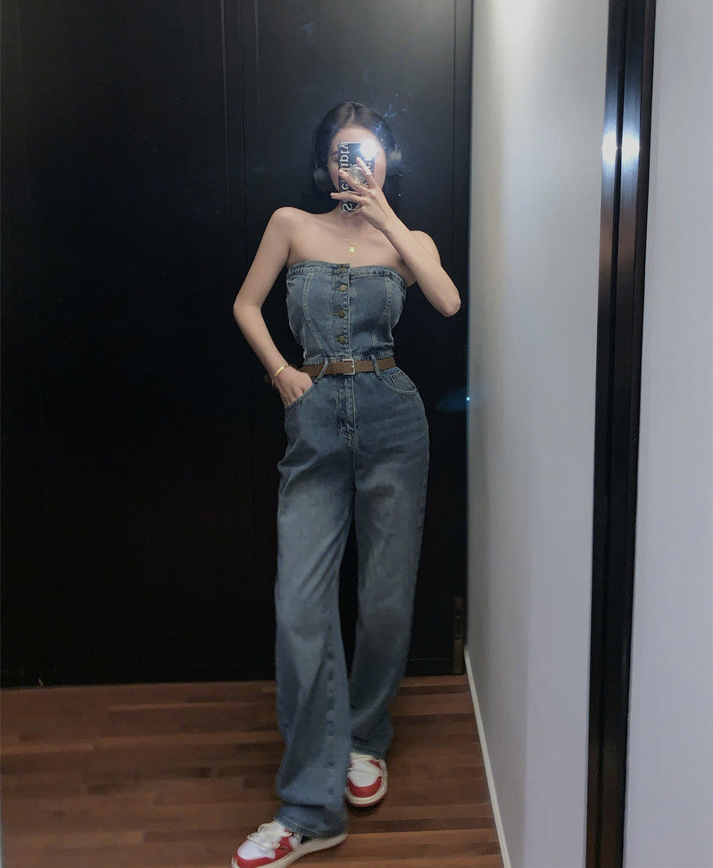 Топ без лямок, летний комбинезон, штаны, подходит для подростков, свободный прямой крой