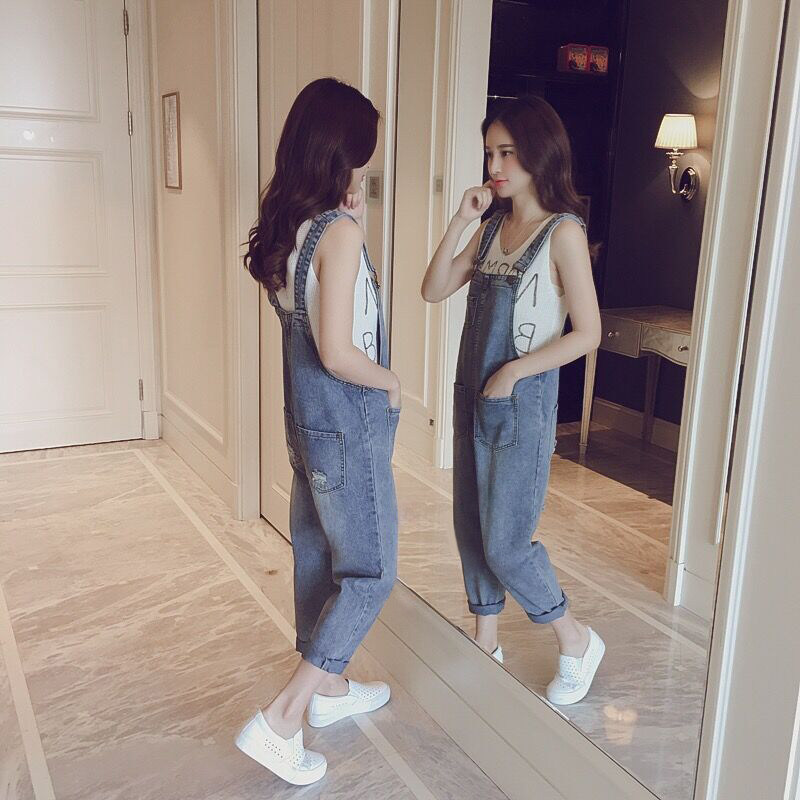 Летние штаны, джинсовые подтяжки, в корейском стиле, большой размер
