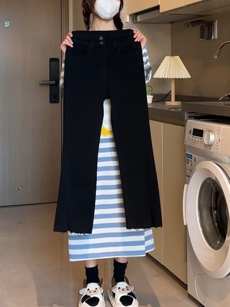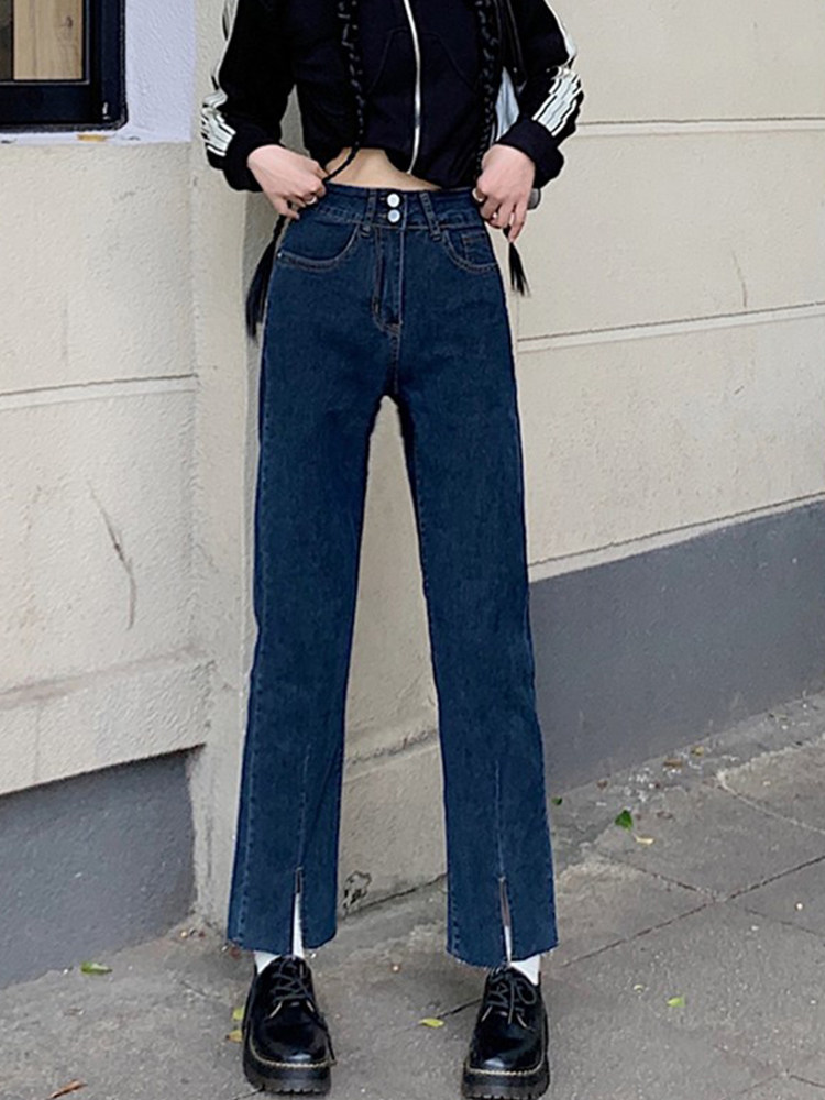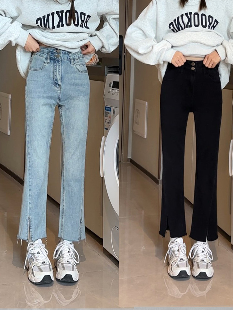 Эластичные дизайнерские весенние джинсы, приталенные штаны, тренд сезона, большой размер, высокая талия