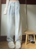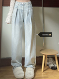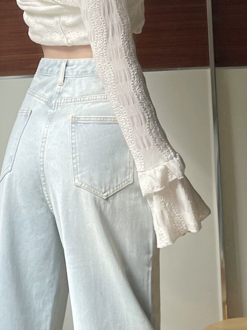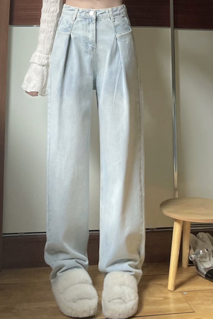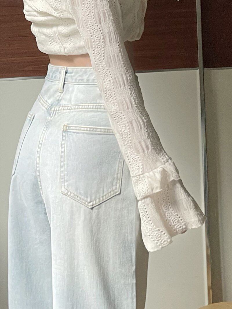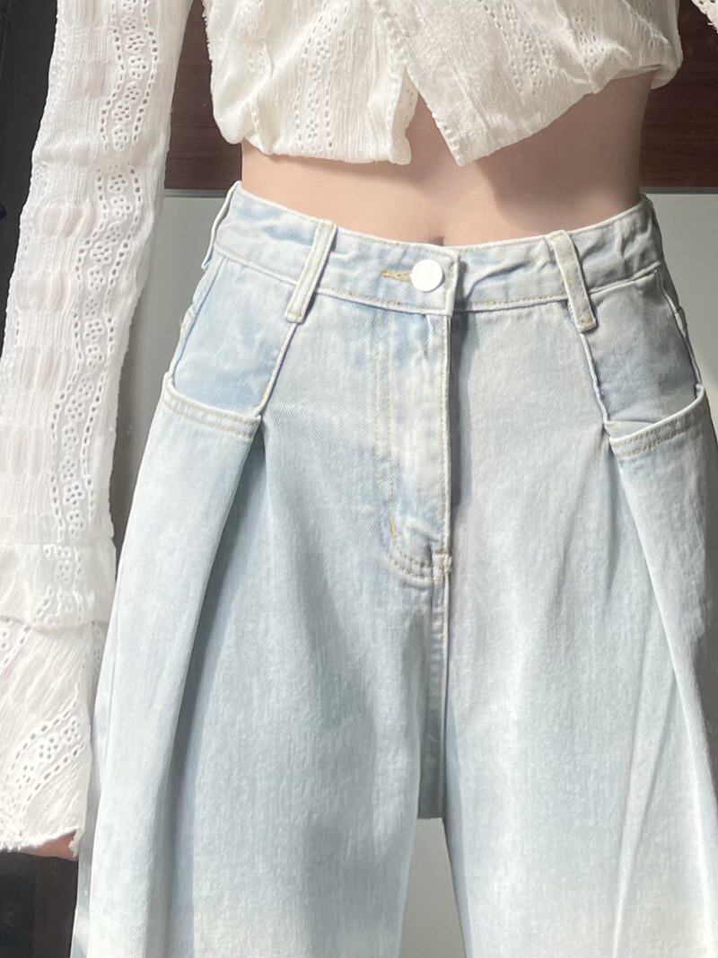 Дизайнерские весенние прямые свободные джинсы, брендовые штаны, большой размер, тренд сезона, высокая талия, свободный крой