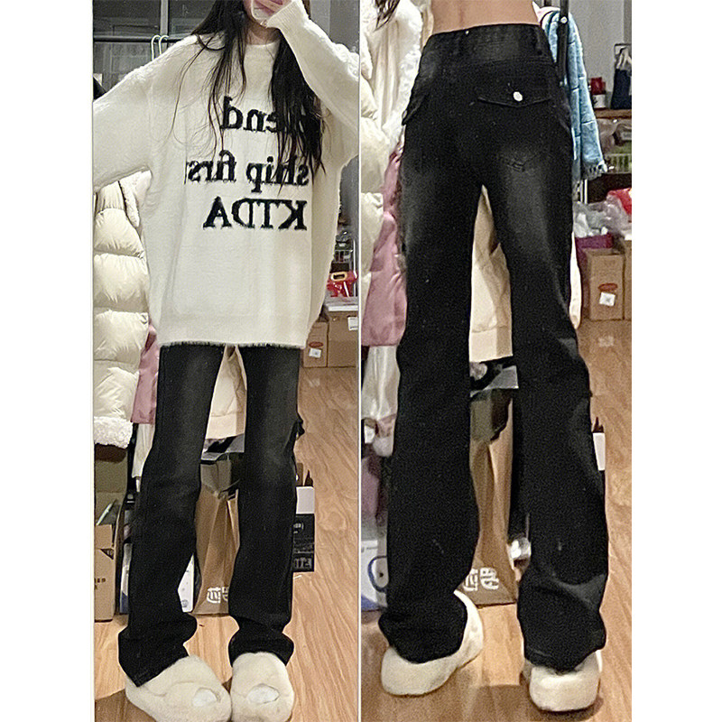 Ретро приталенные черные осенние прямые свободные джинсы, демисезонные длинные штаны, в американском стиле