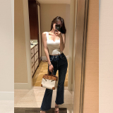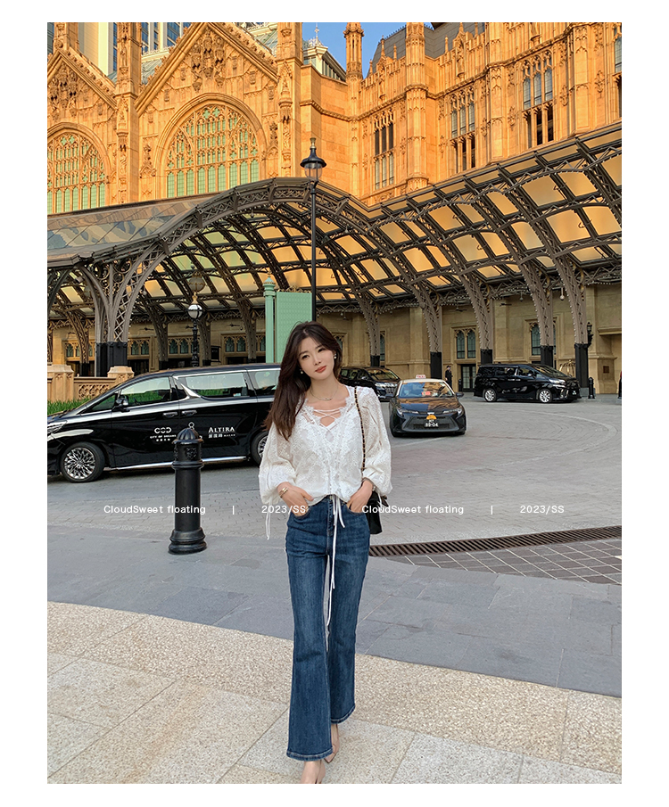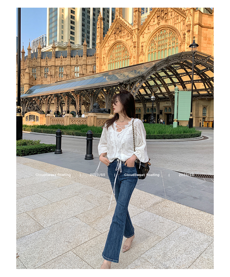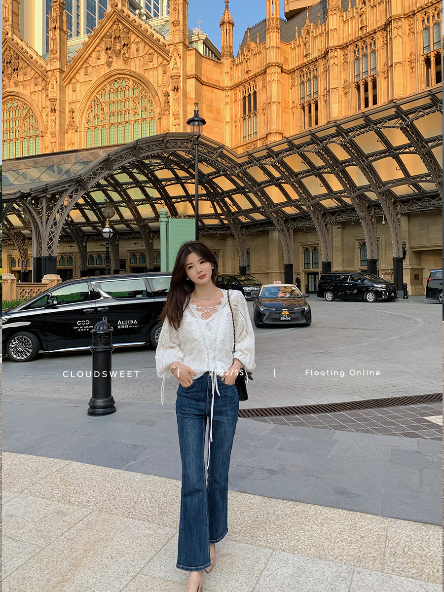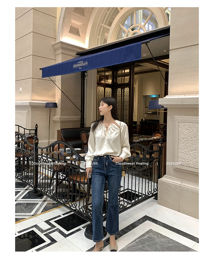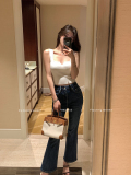 Осенние джинсы, эластичные штаны, мегафон, высокая талия, по фигуре, свободный прямой крой