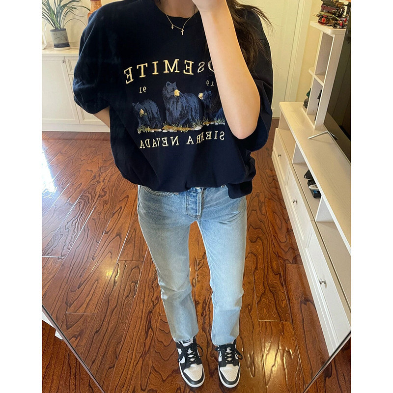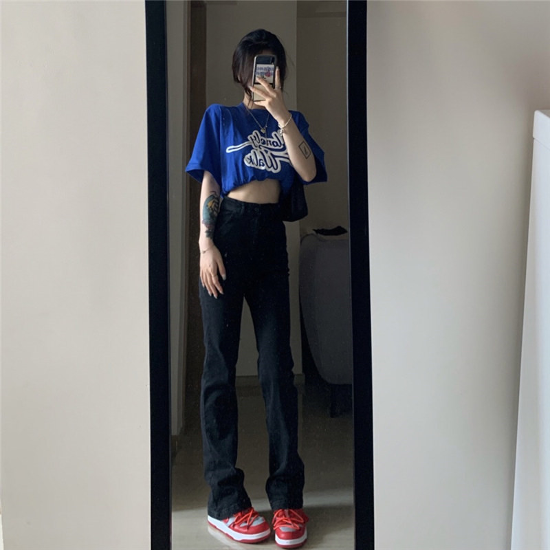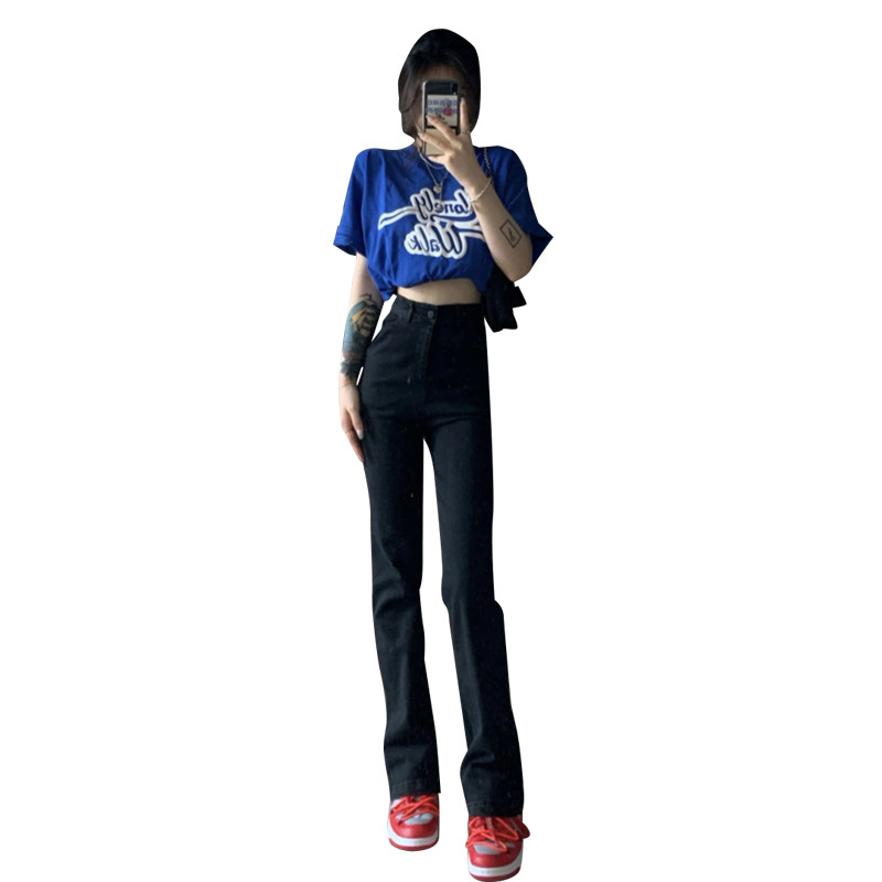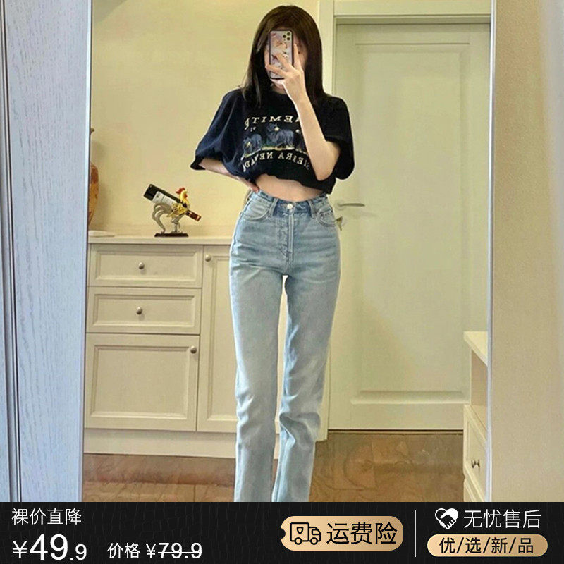 Ретро джинсы, штаны, леггинсы, в американском стиле, осенние, коллекция 2023, подходит для подростков, высокая талия, свободный прямой крой