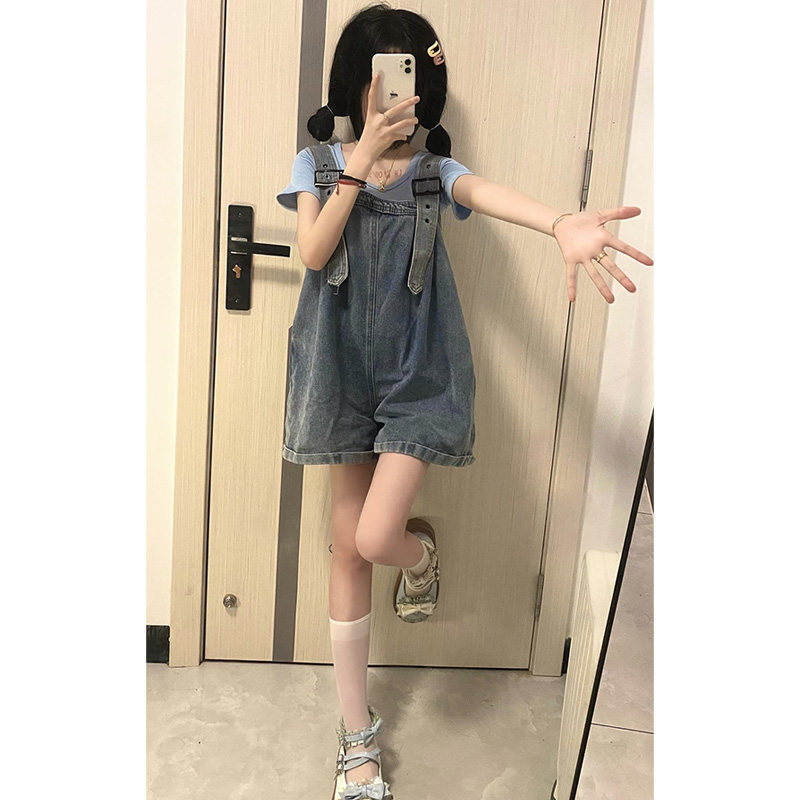 Джинсовые подтяжки, шорты, летние небольшие дизайнерские штаны, подходят для подростков, тренд сезона, высокая талия, свободный прямой крой
