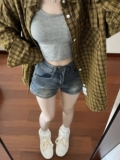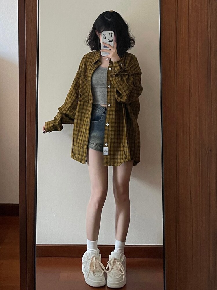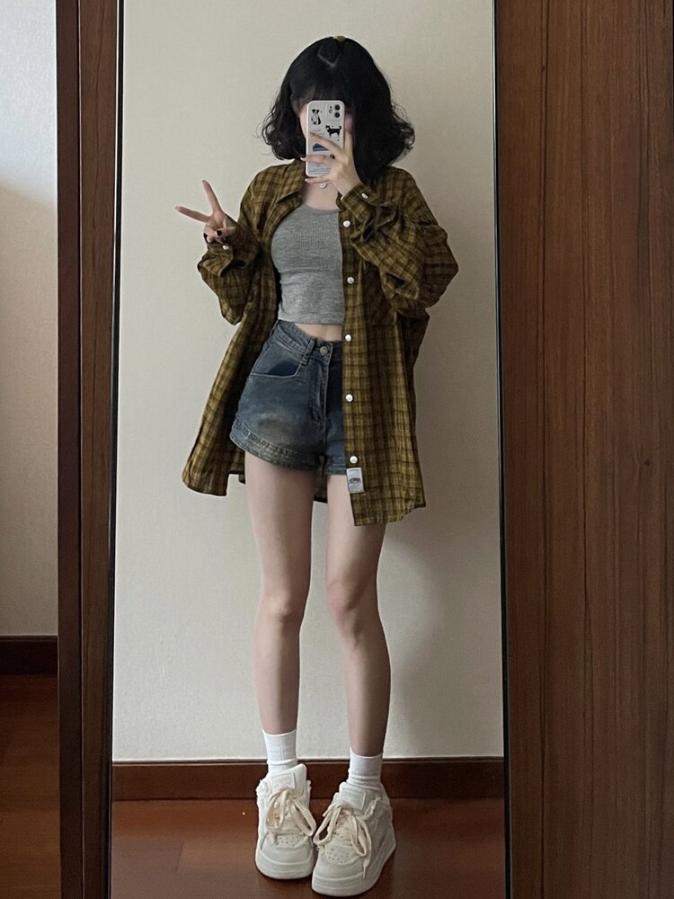 Ретро джинсовая юбка, шорты, штаны, большой размер, в американском стиле, высокая талия, свободный прямой крой, А-силуэт