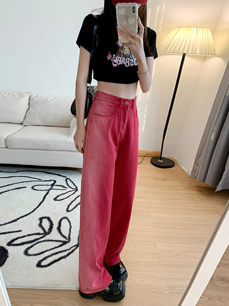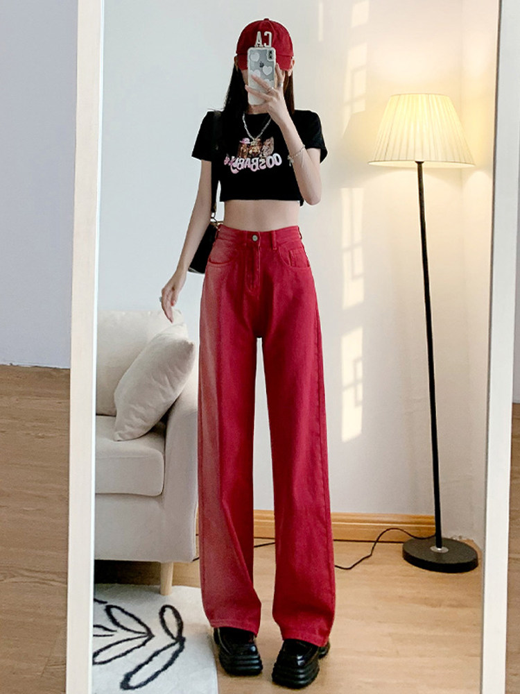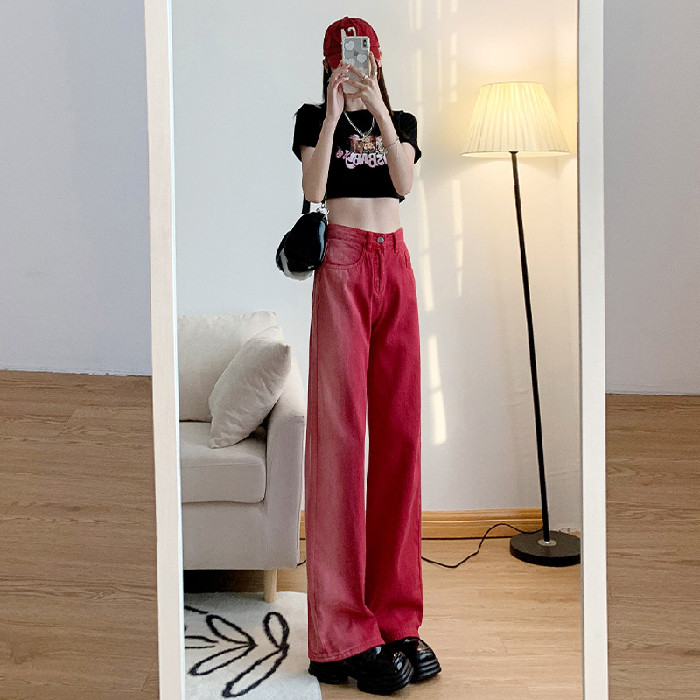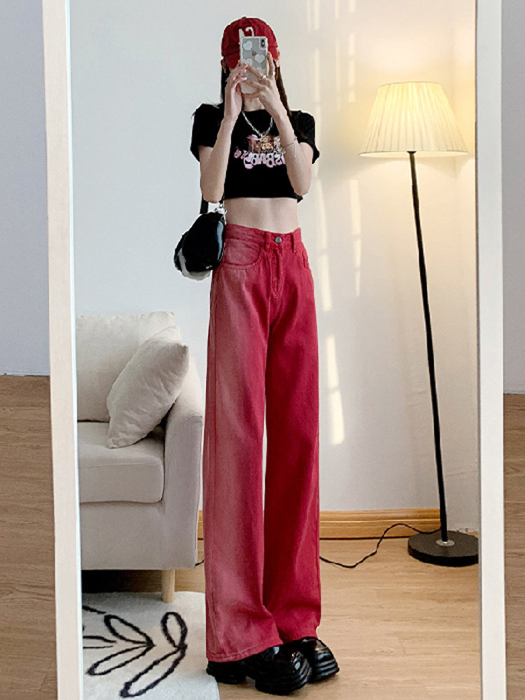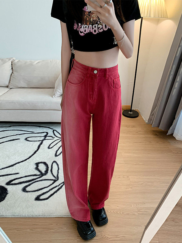 Красные летние джинсы, ретро штаны, градиент, в американском стиле, свободный прямой крой