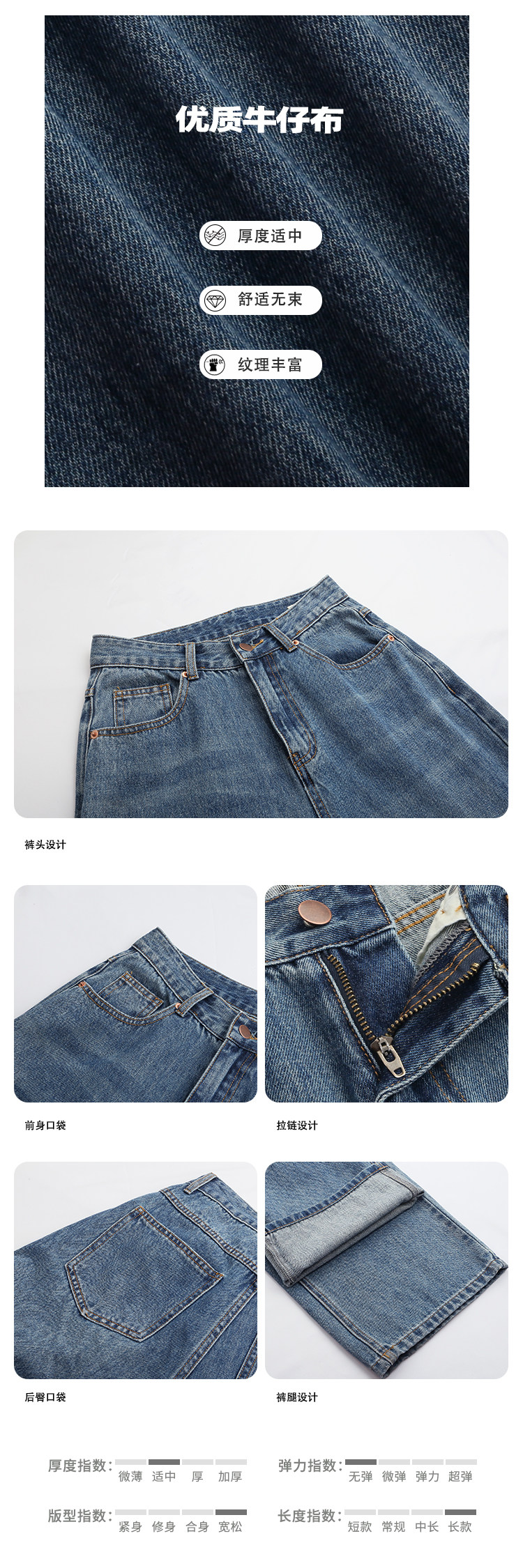 Осенние джинсы, ретро штаны, высокая талия, свободный прямой крой, коллекция 2023