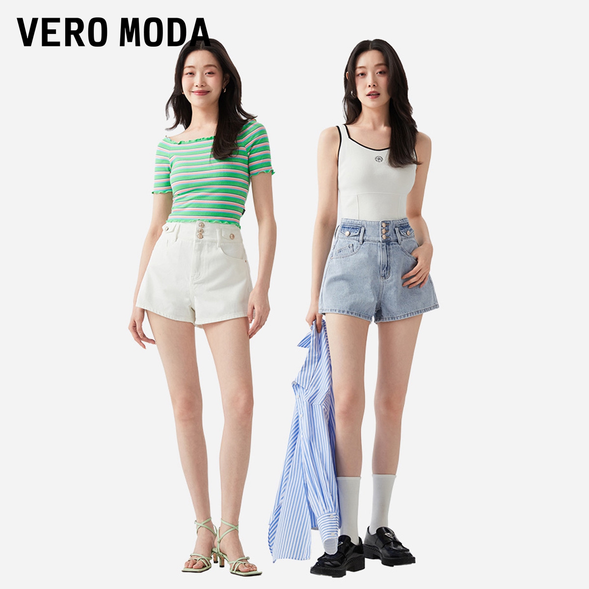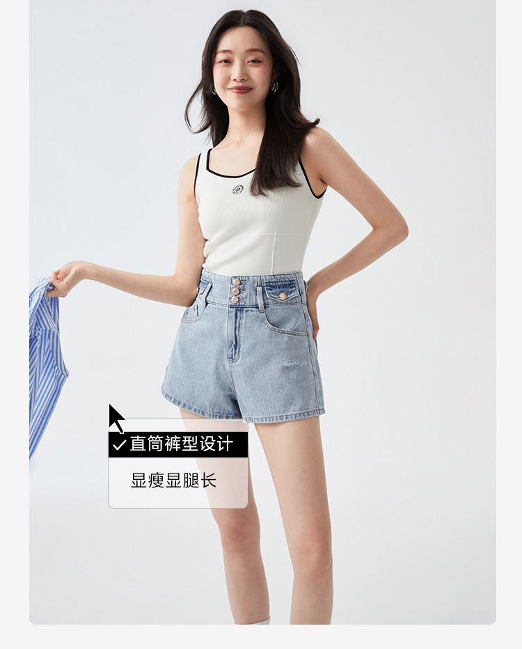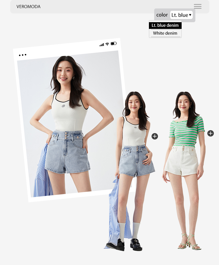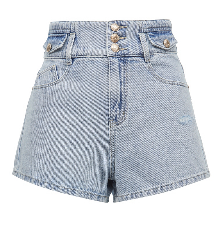 Случайный комфорт и джинсовые шорты с высокой талией | |