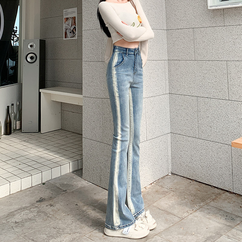Джинсы, весенние штаны, синие штаны-клёш, градиент, в обтяжку, высокая талия