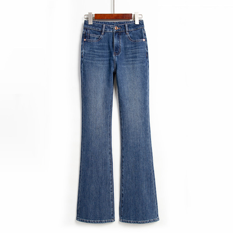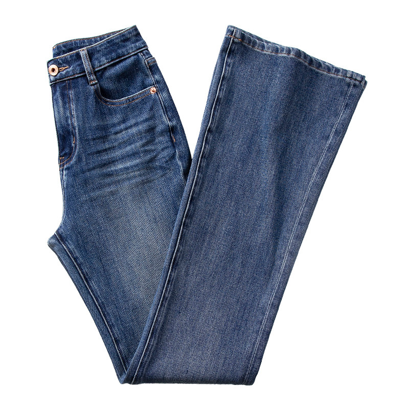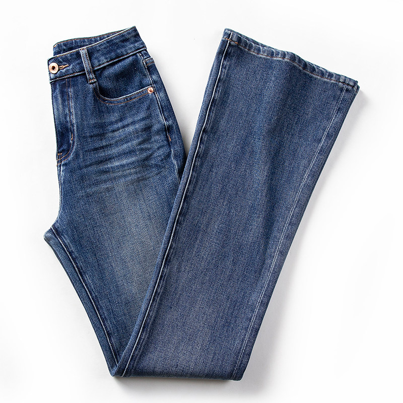 Ретро синие цветные джинсы, осенние штаны, эластичный мегафон, высокая талия, облегающий крой