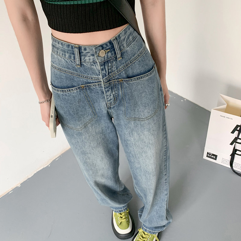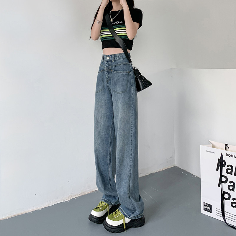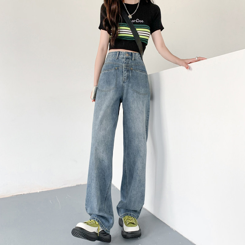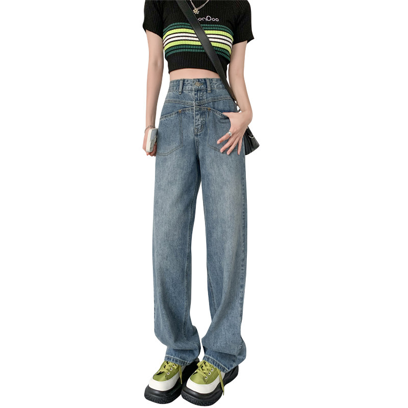 Ретро осенние прямые свободные джинсы, брендовые штаны, 2024 года, высокая талия, свободный крой