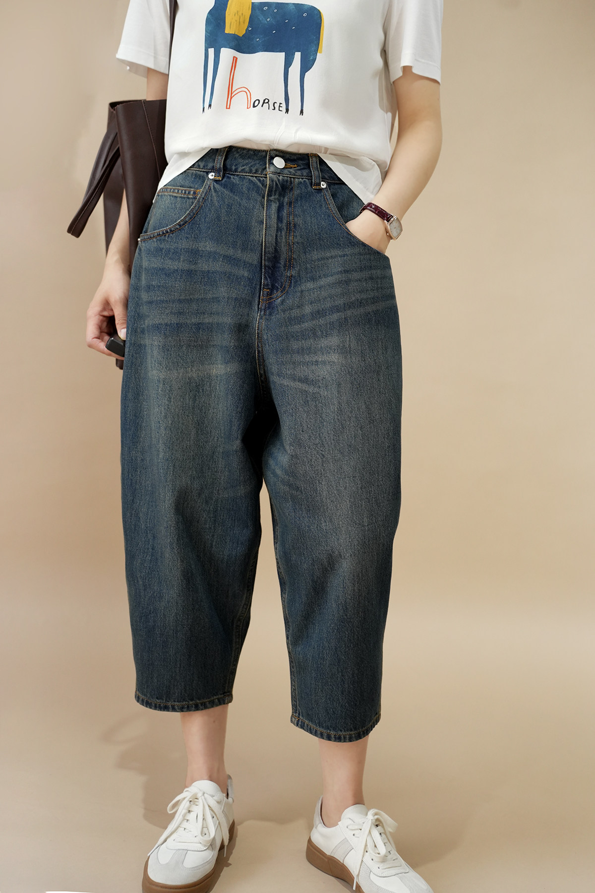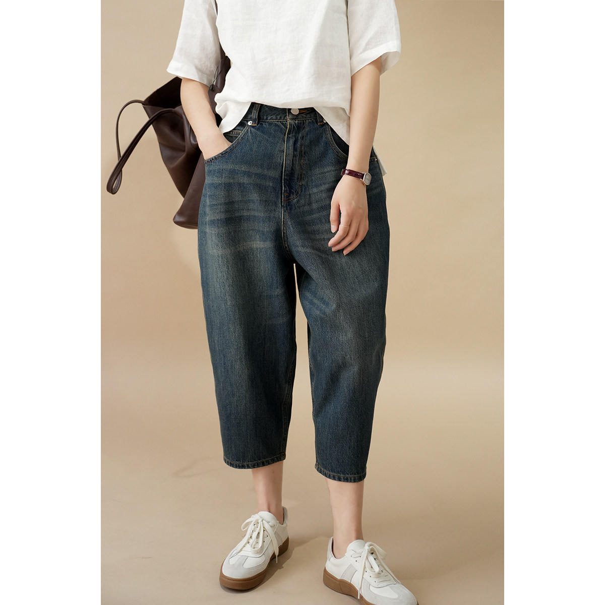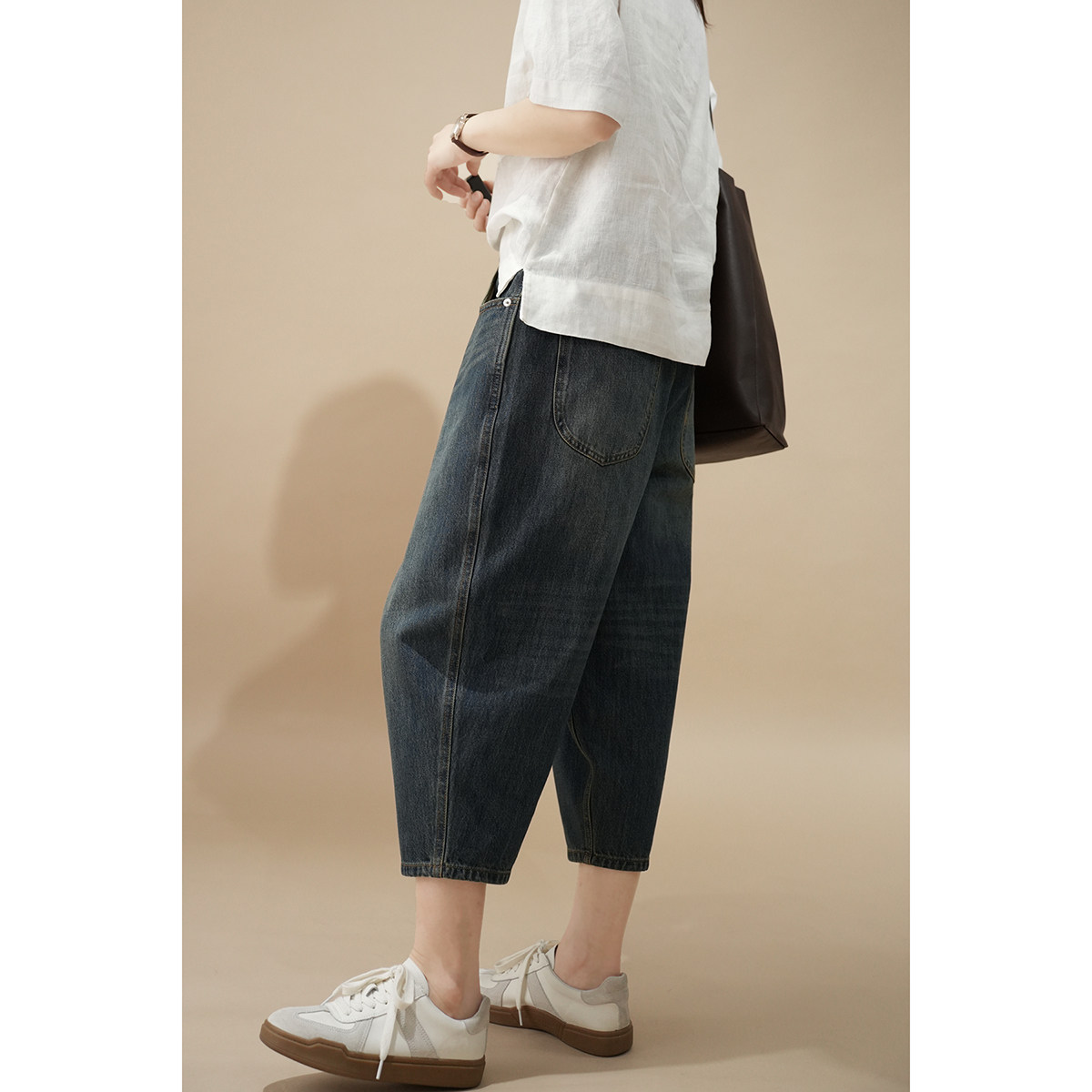 Штаны, хлопковые летние джинсы, по фигуре, высокая талия, свободный крой, городской стиль