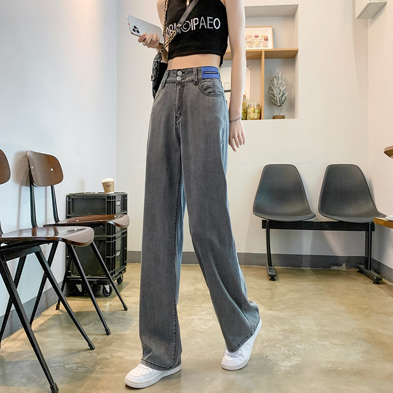 Тонкие джинсы, шелковые штаны, высокая талия, свободный прямой крой