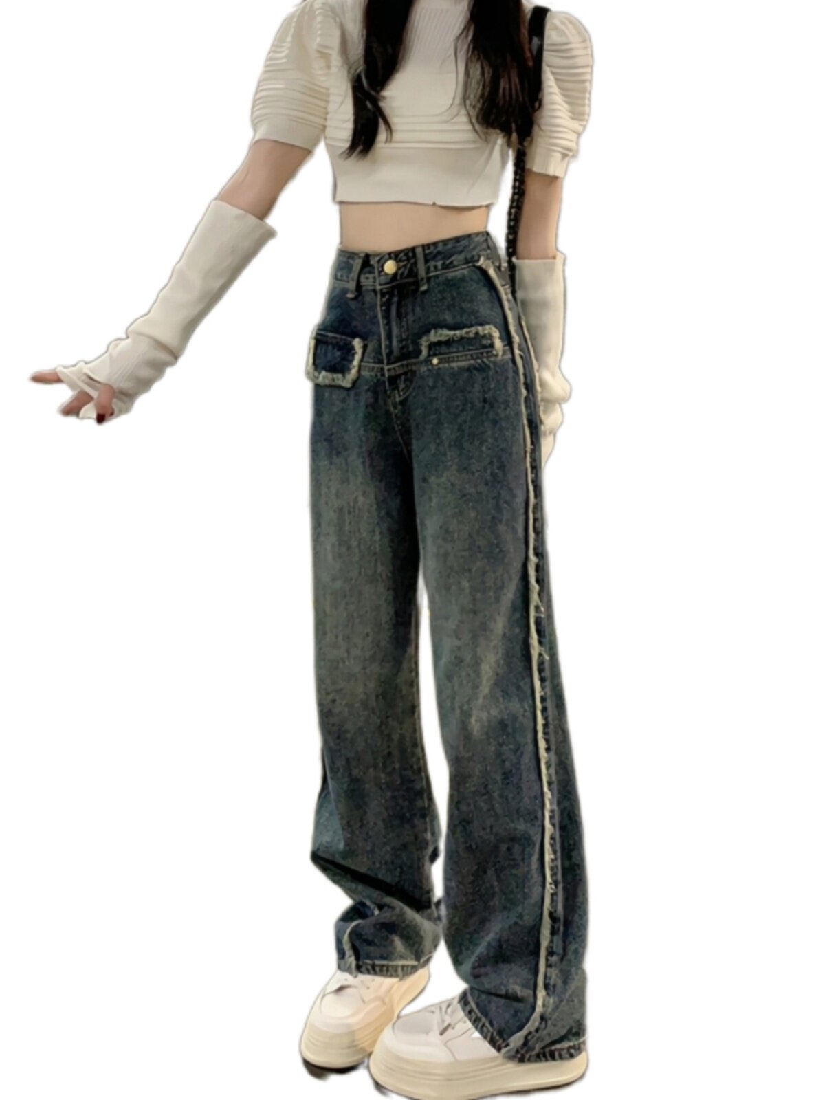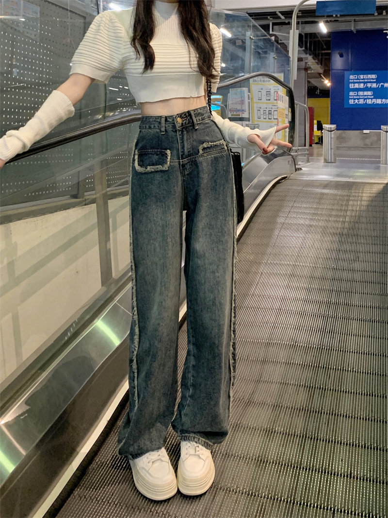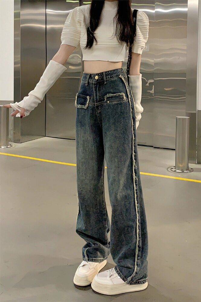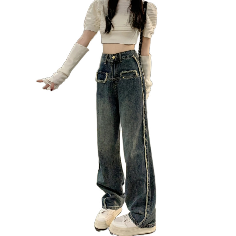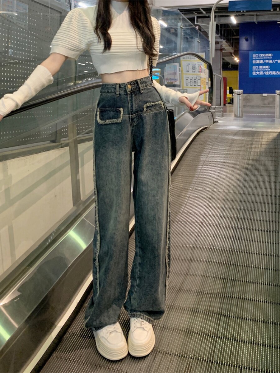 Дизайнерские осенние джинсы, приталенные штаны, тренд сезона, большой размер, высокая талия, свободный прямой крой