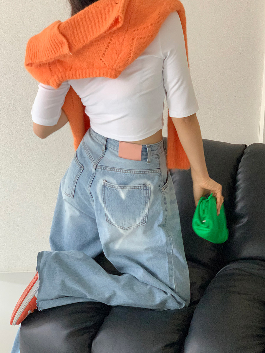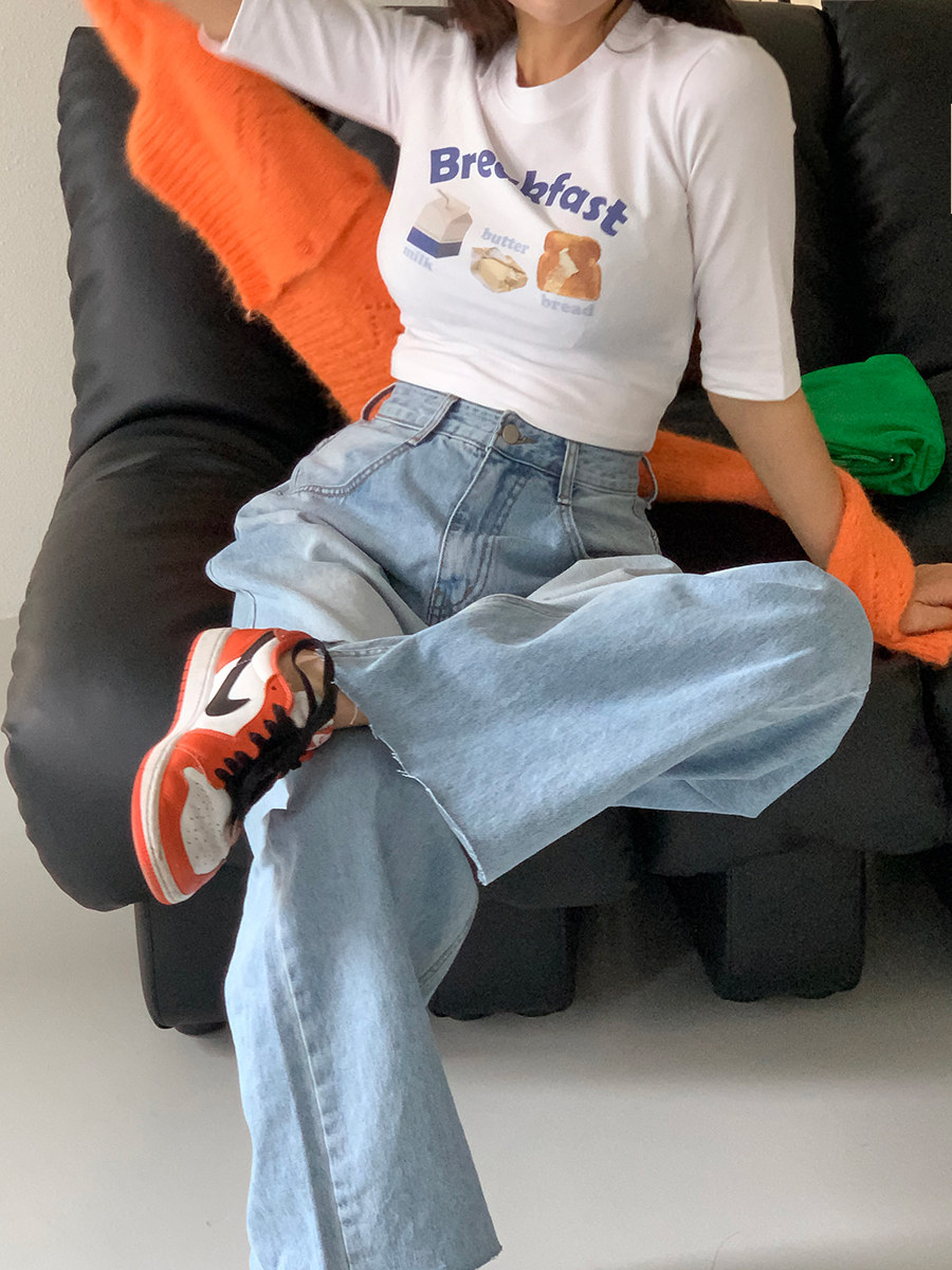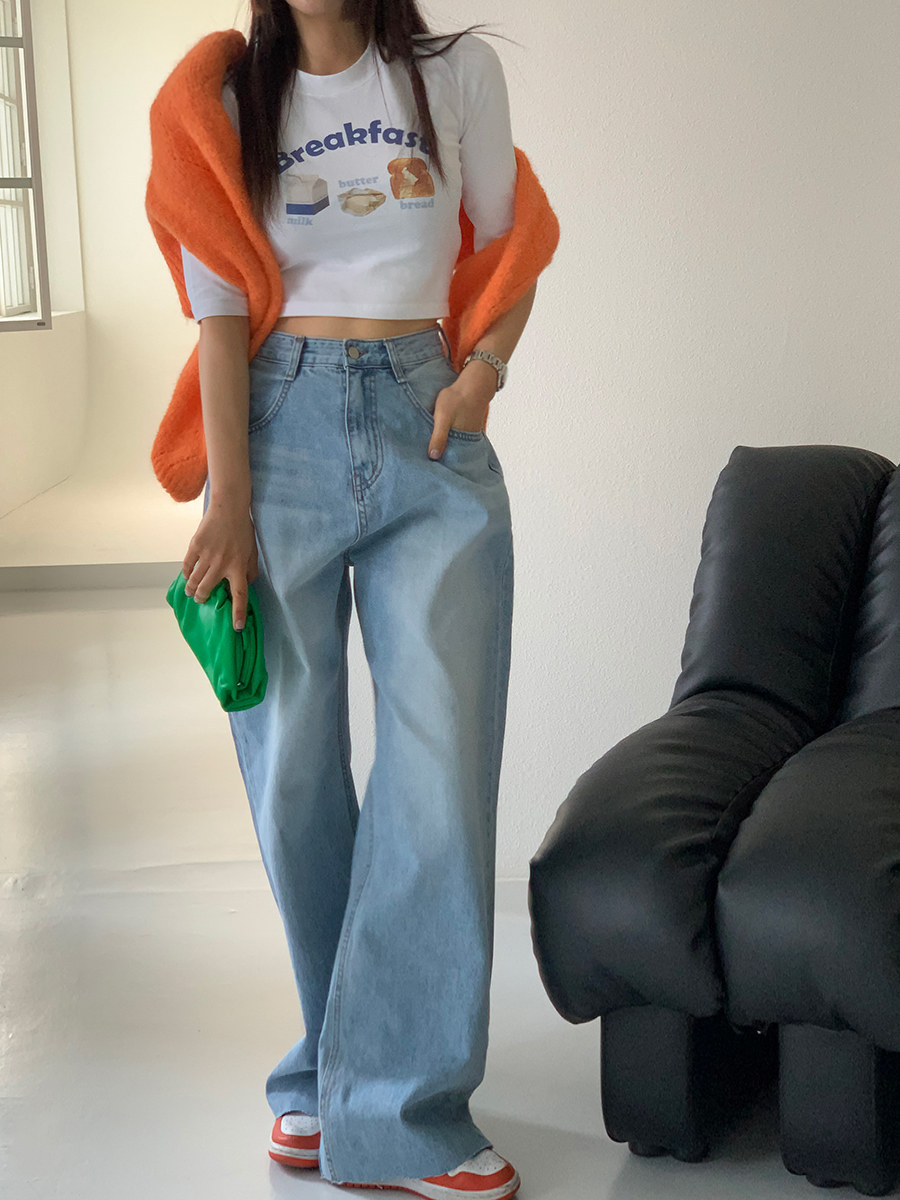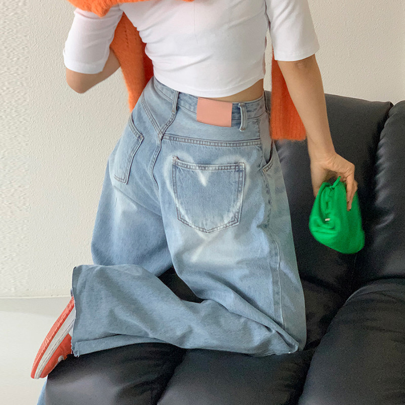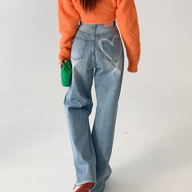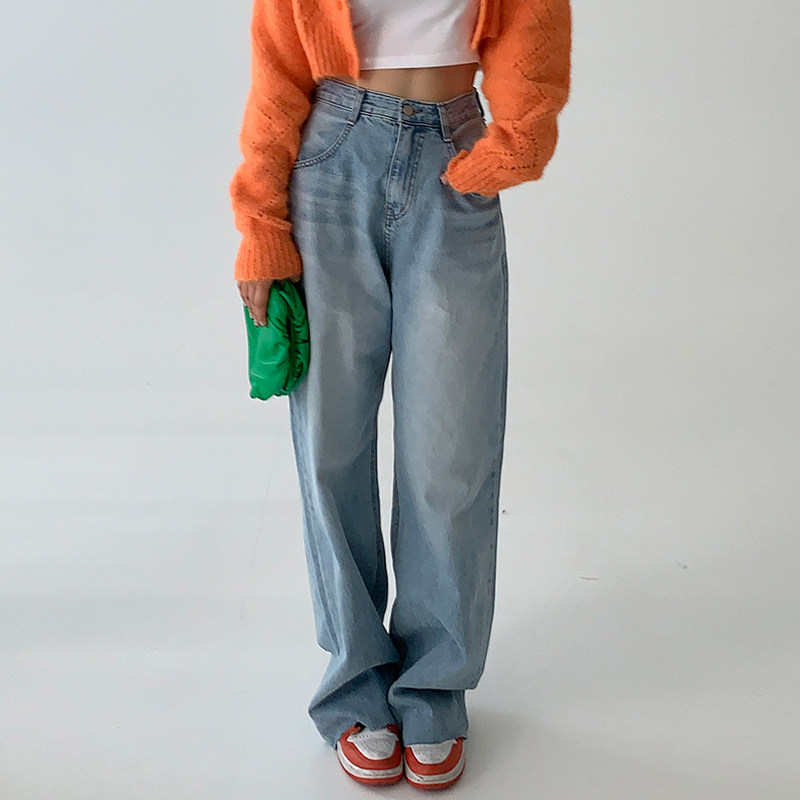 Летние ретро приталенные джинсы, штаны, в корейском стиле, высокая талия, свободный прямой крой