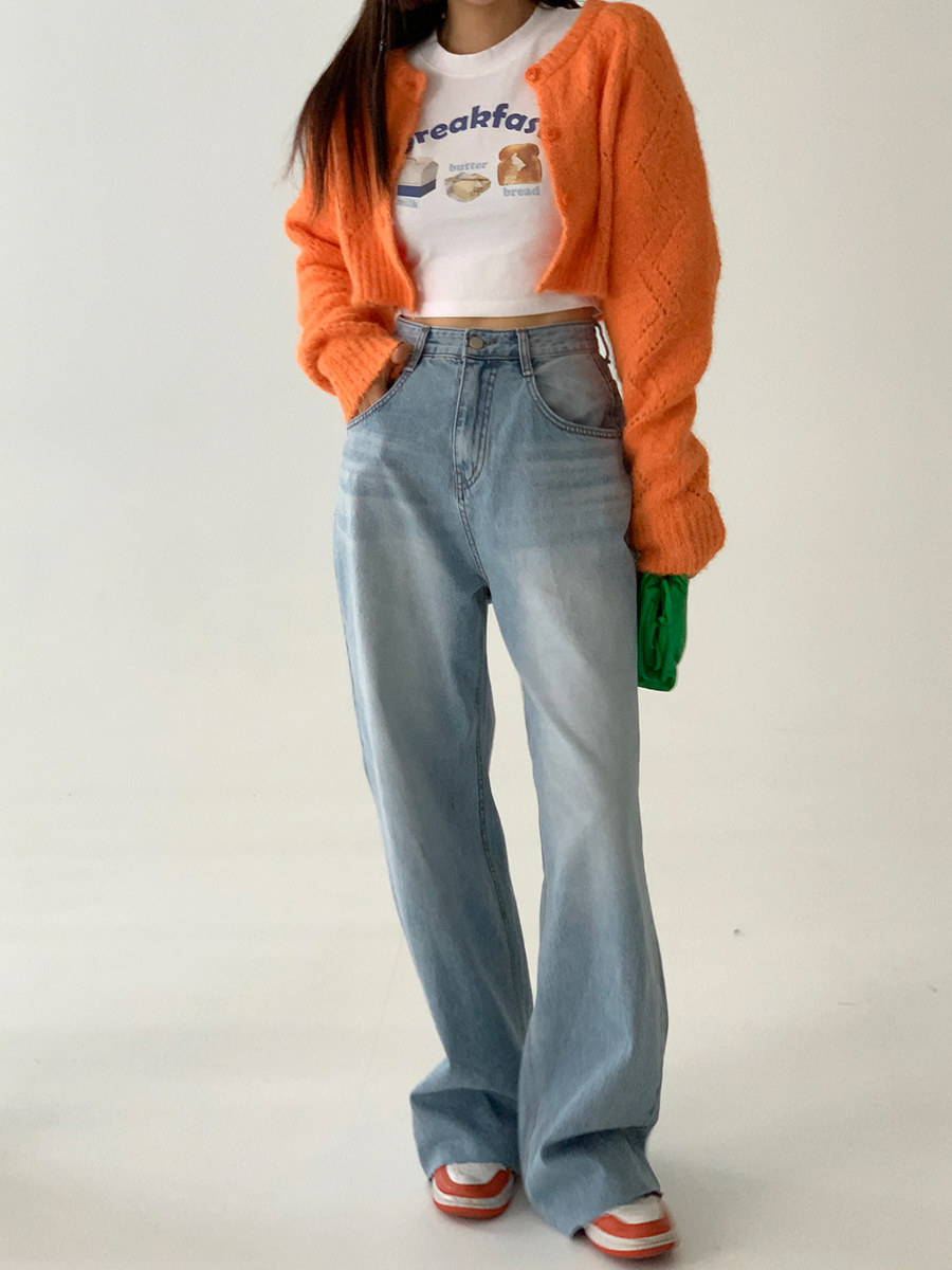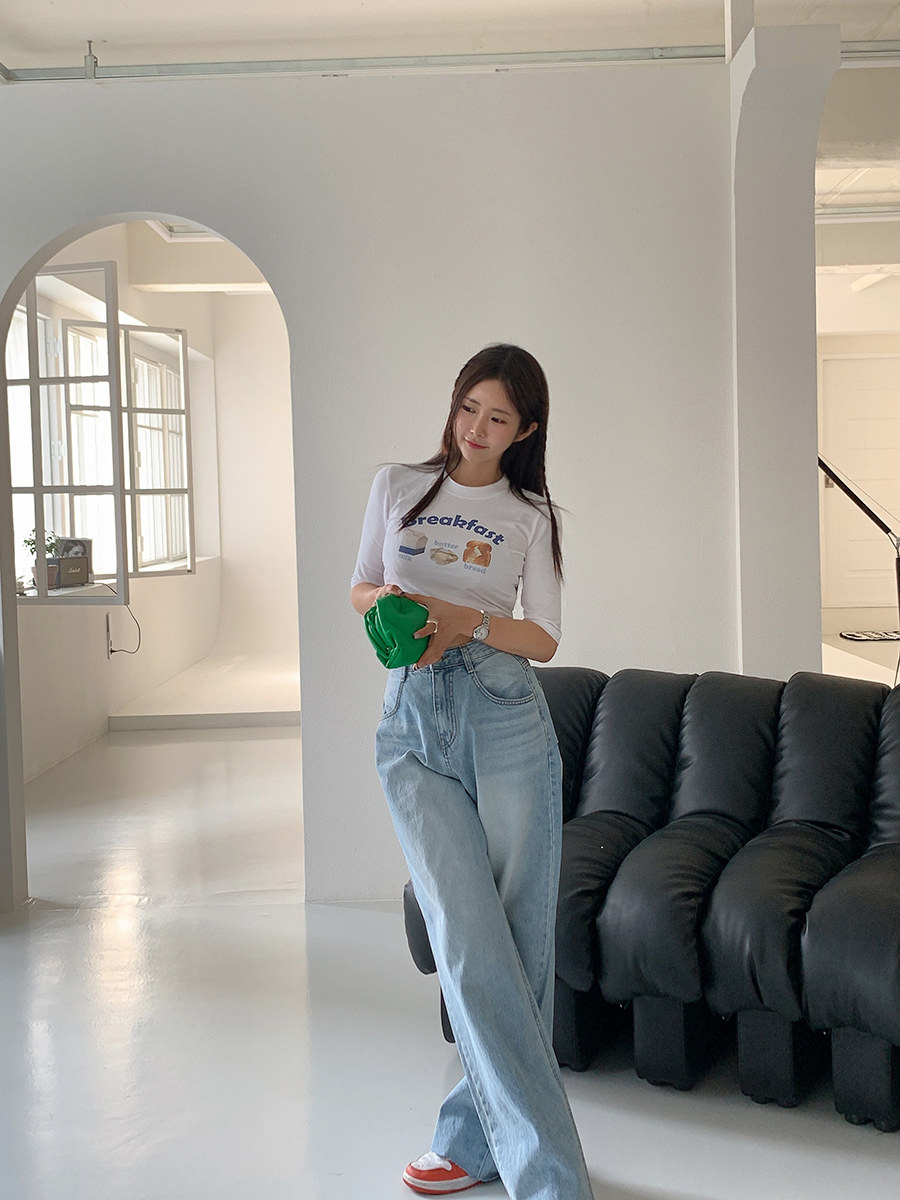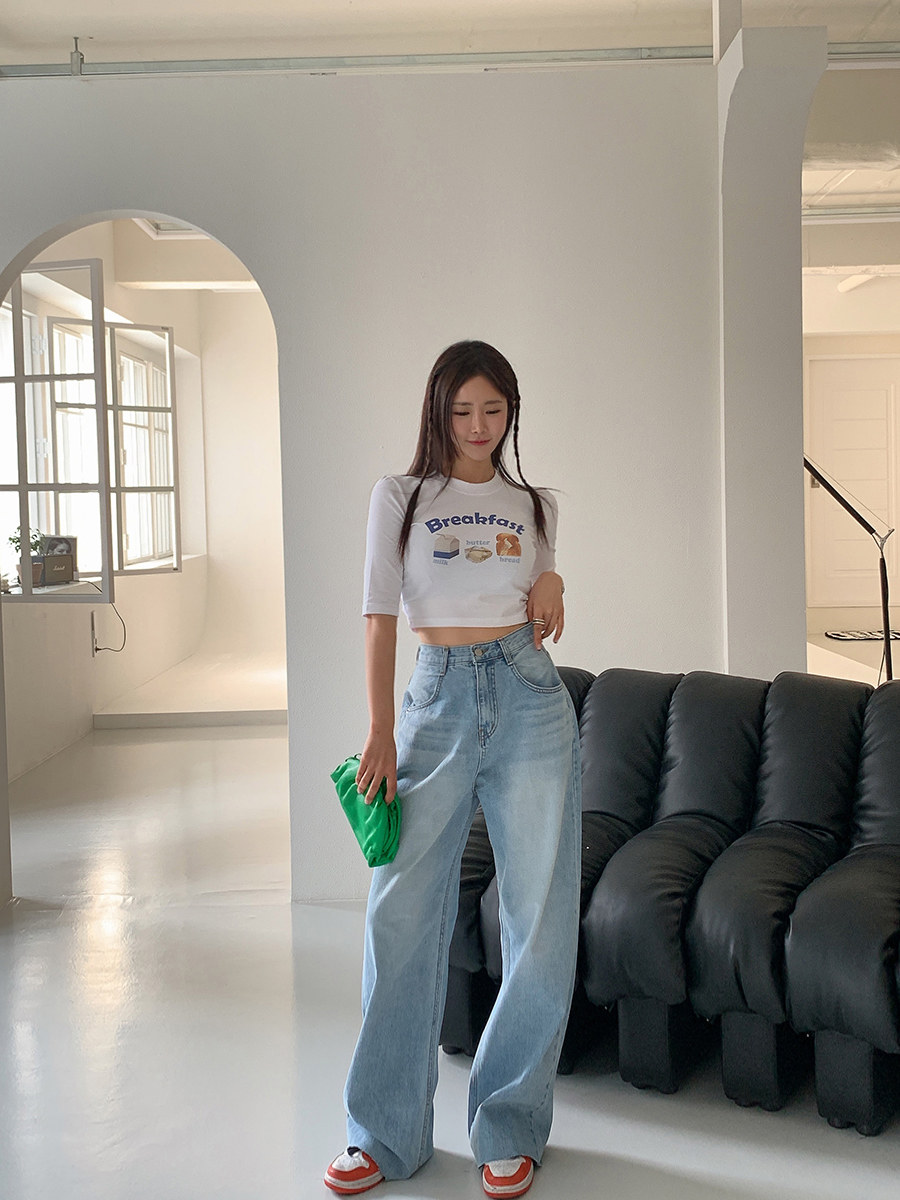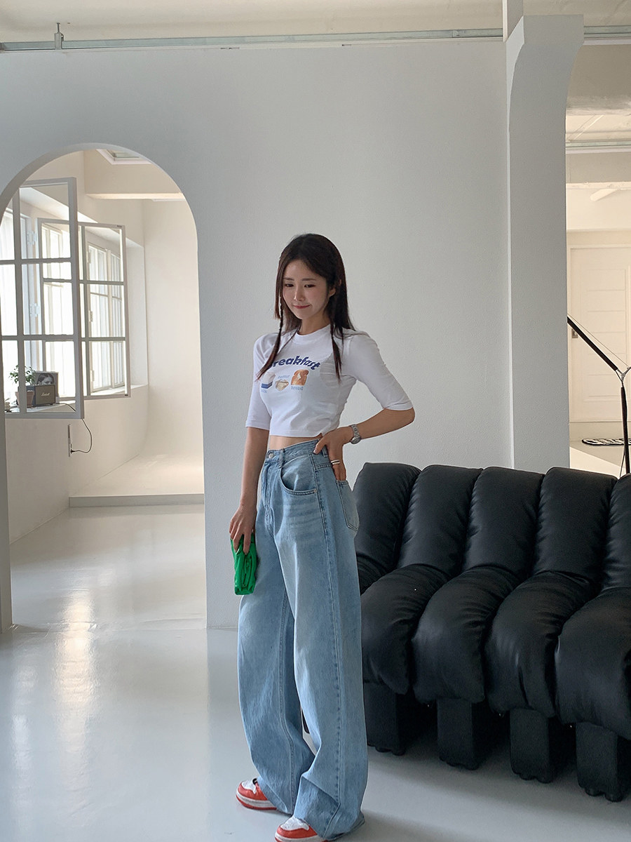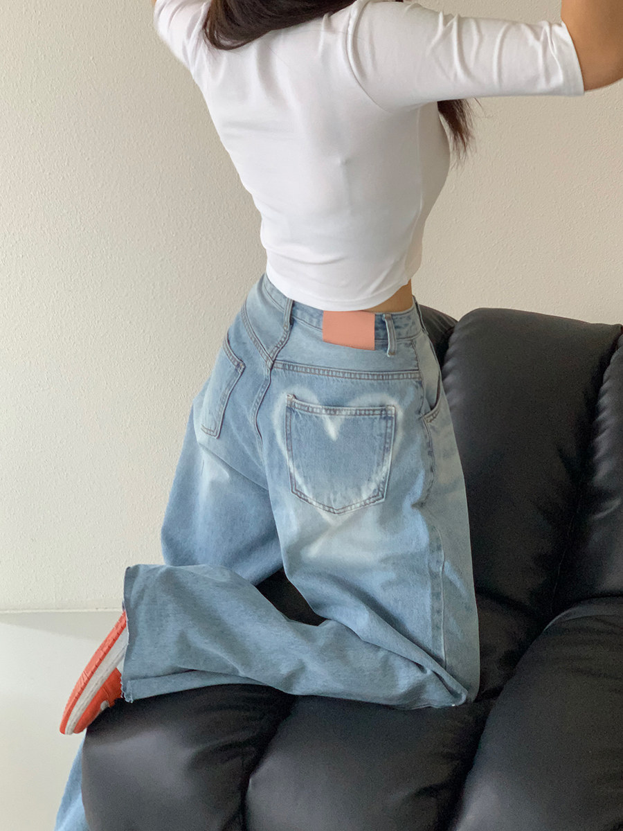 Летние ретро приталенные джинсы, штаны, в корейском стиле, высокая талия, свободный прямой крой