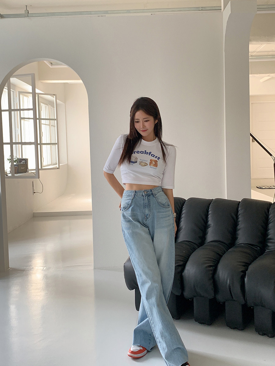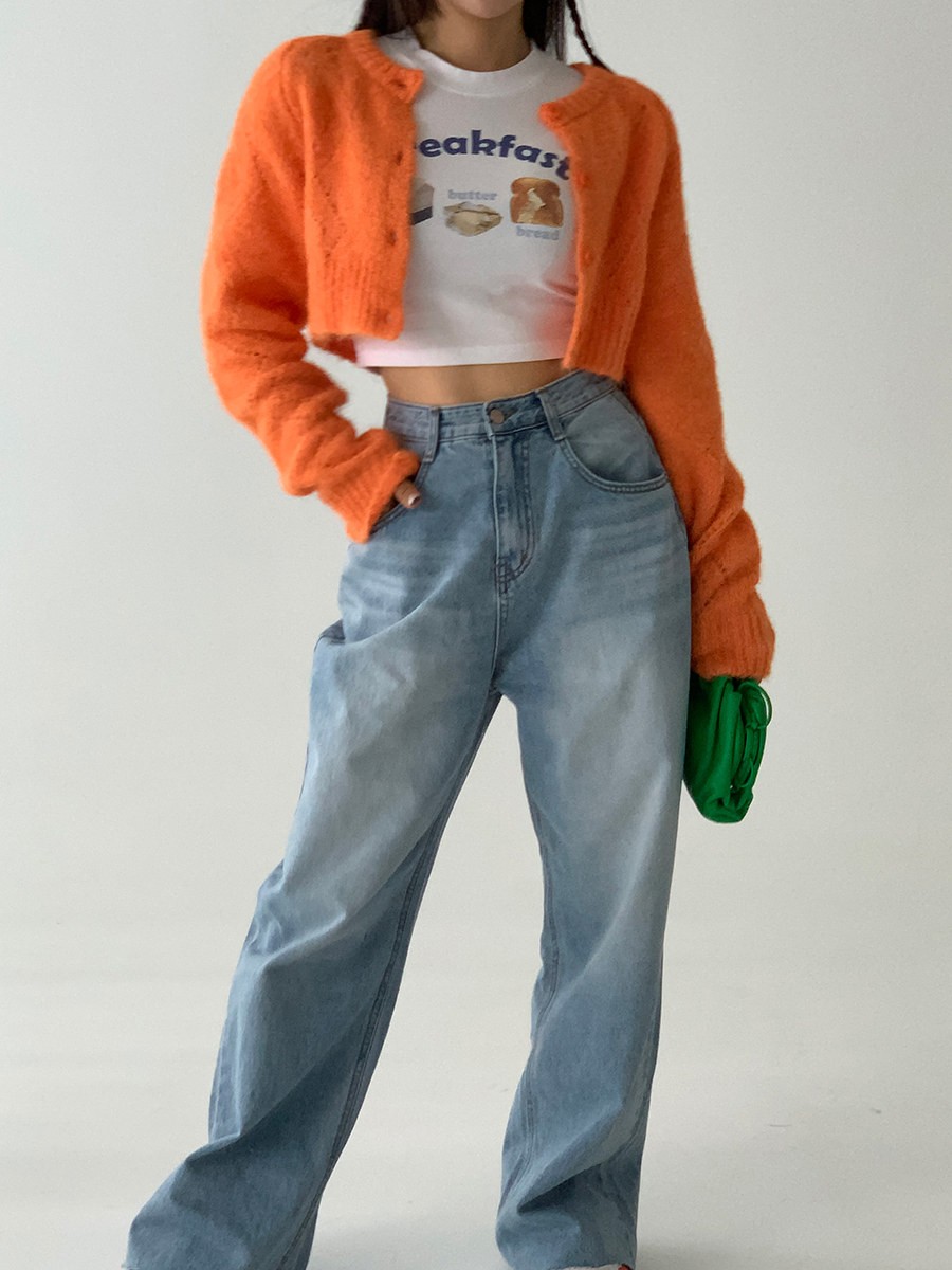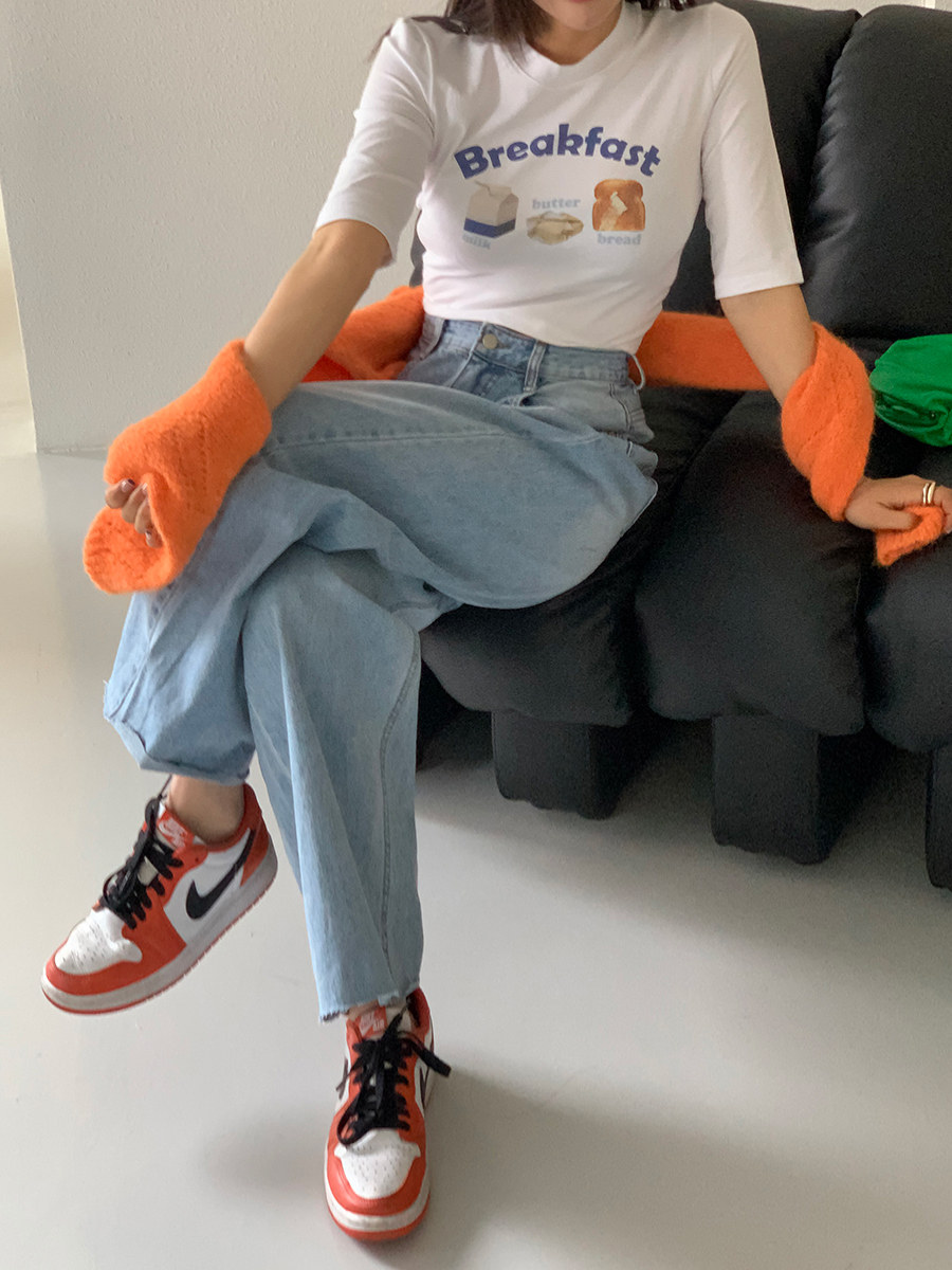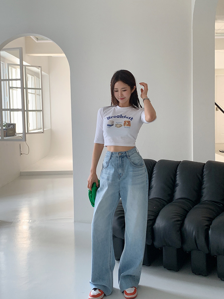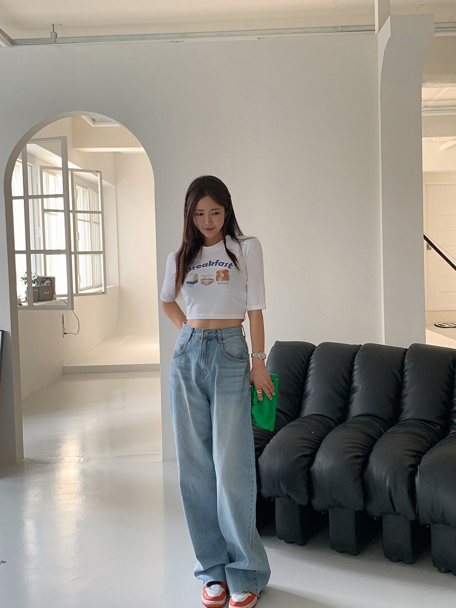 Летние ретро приталенные джинсы, штаны, в корейском стиле, высокая талия, свободный прямой крой