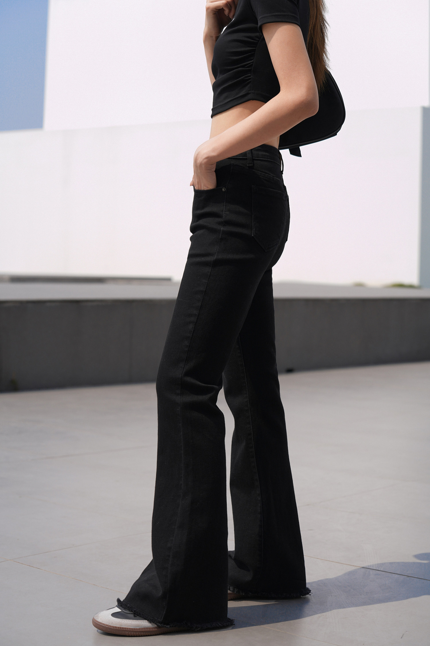 Черные джинсовые летние штаны-клёш, штаны, высокая талия