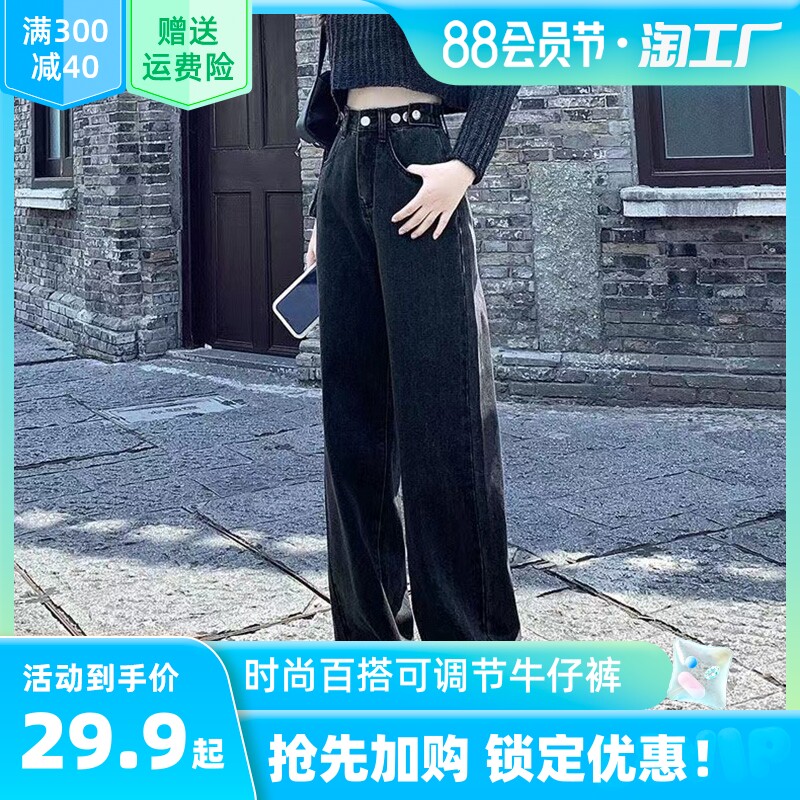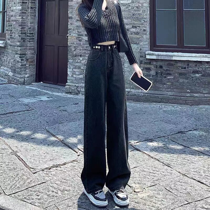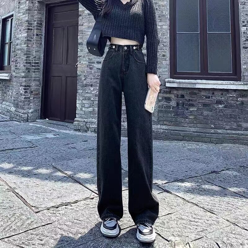 Весенние прямые свободные джинсы, осенние штаны, коллекция 2023, высокая талия, подходит для подростков, по фигуре, свободный крой