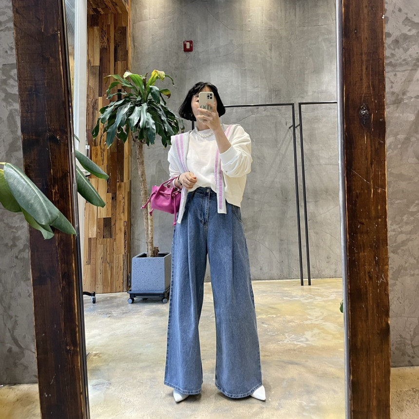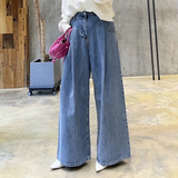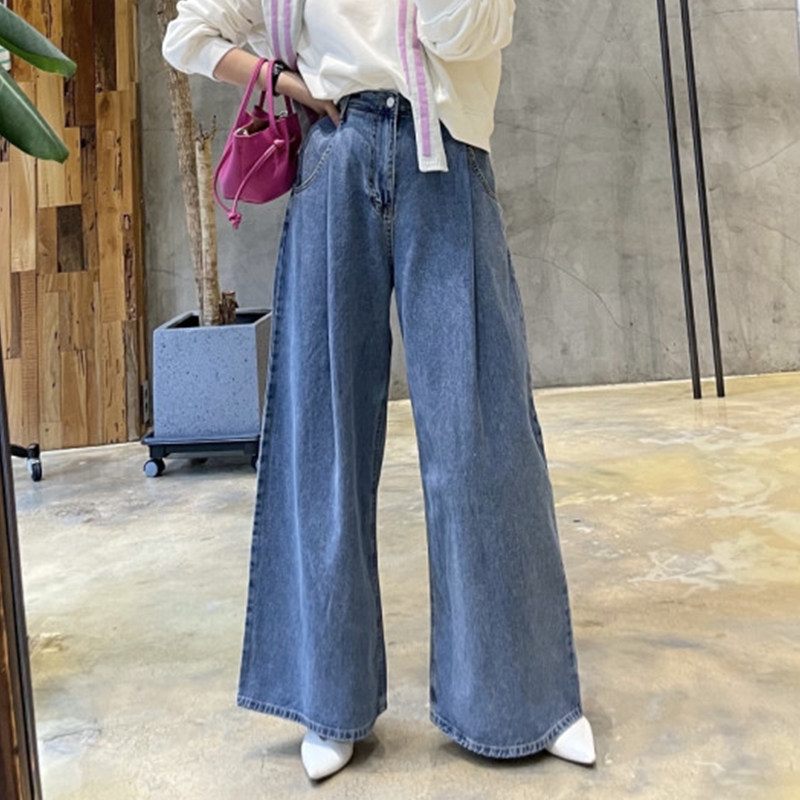 Летние ретро джинсы, штаны, в корейском стиле, высокая талия, свободный крой