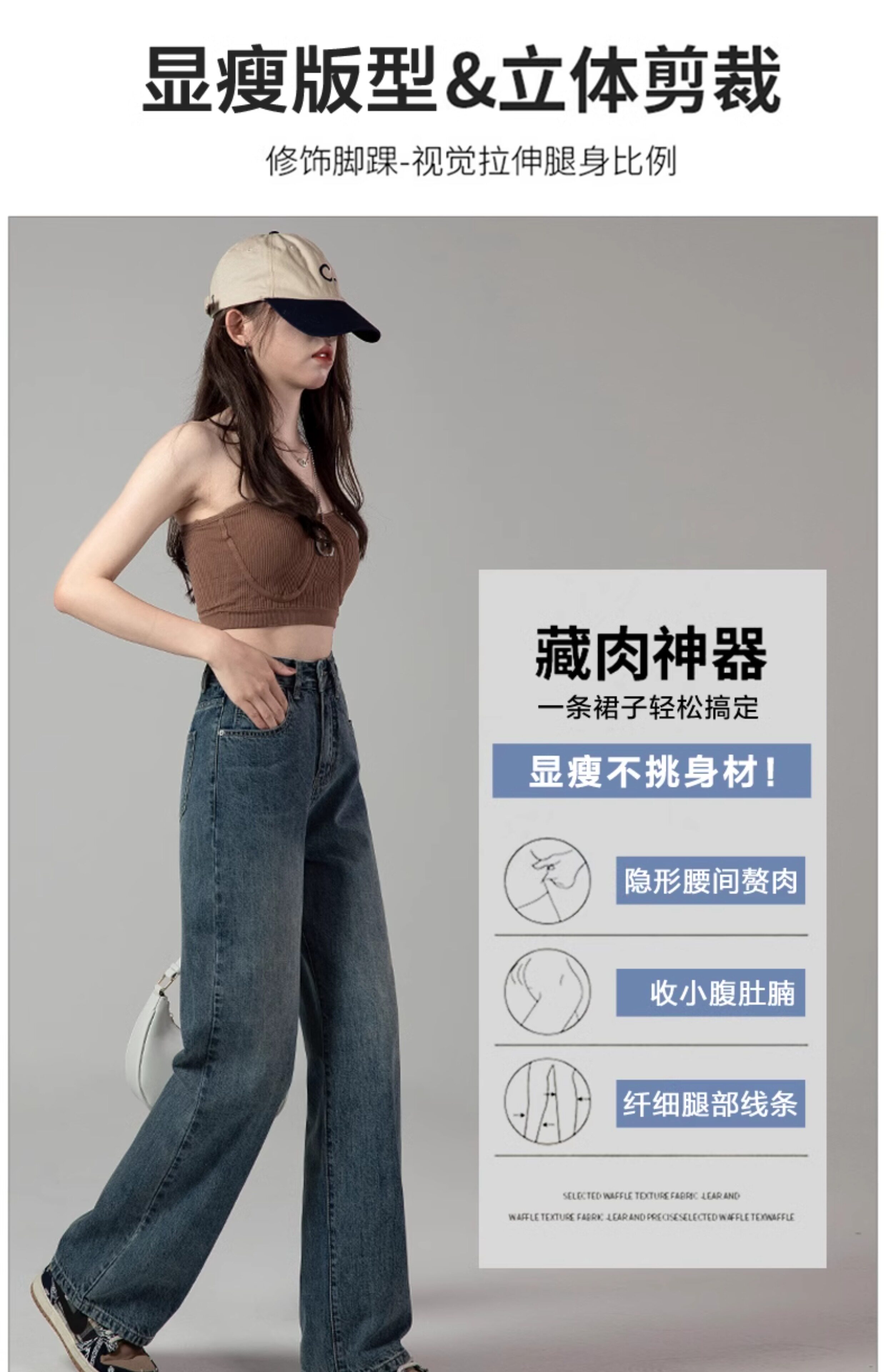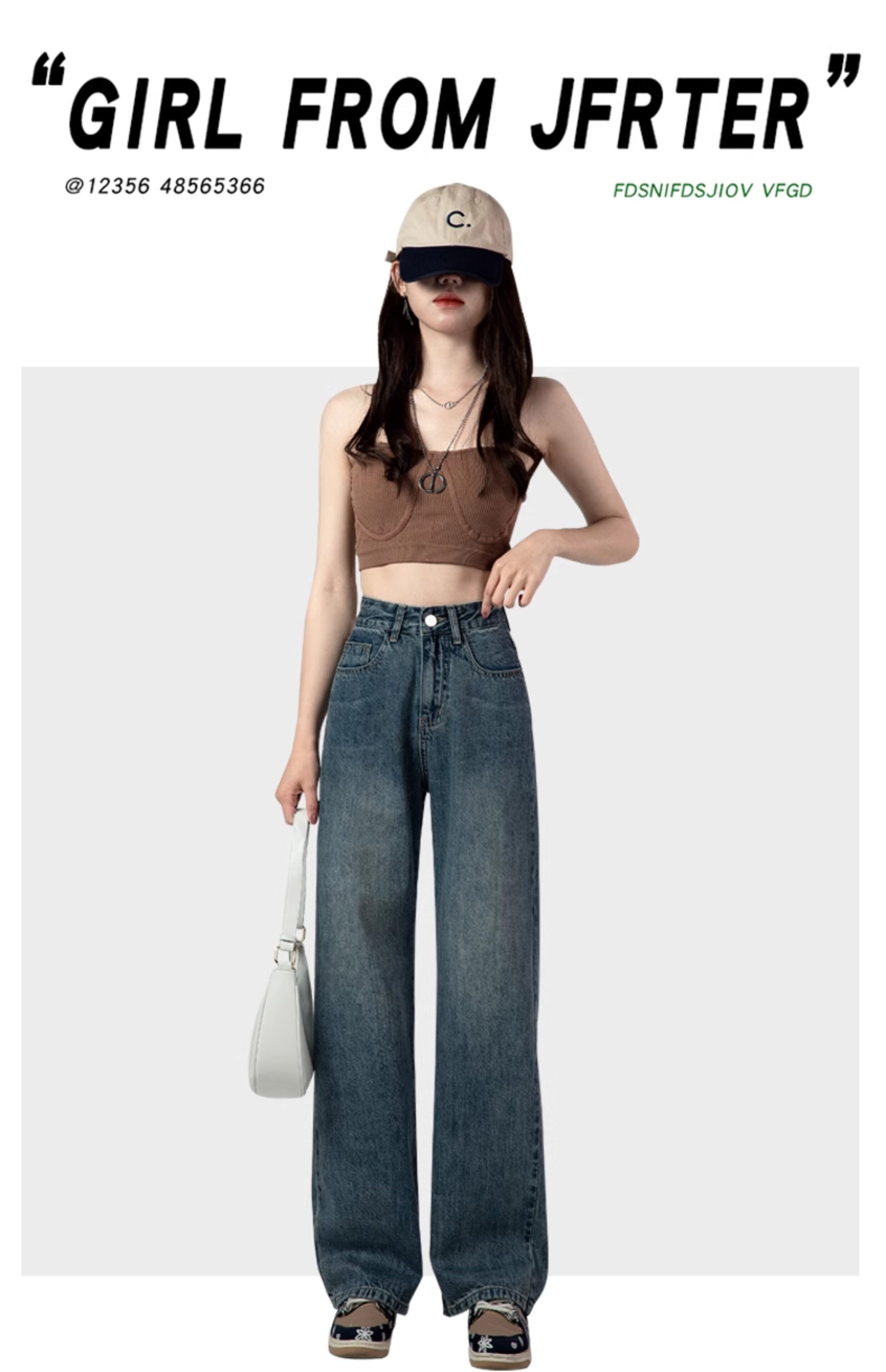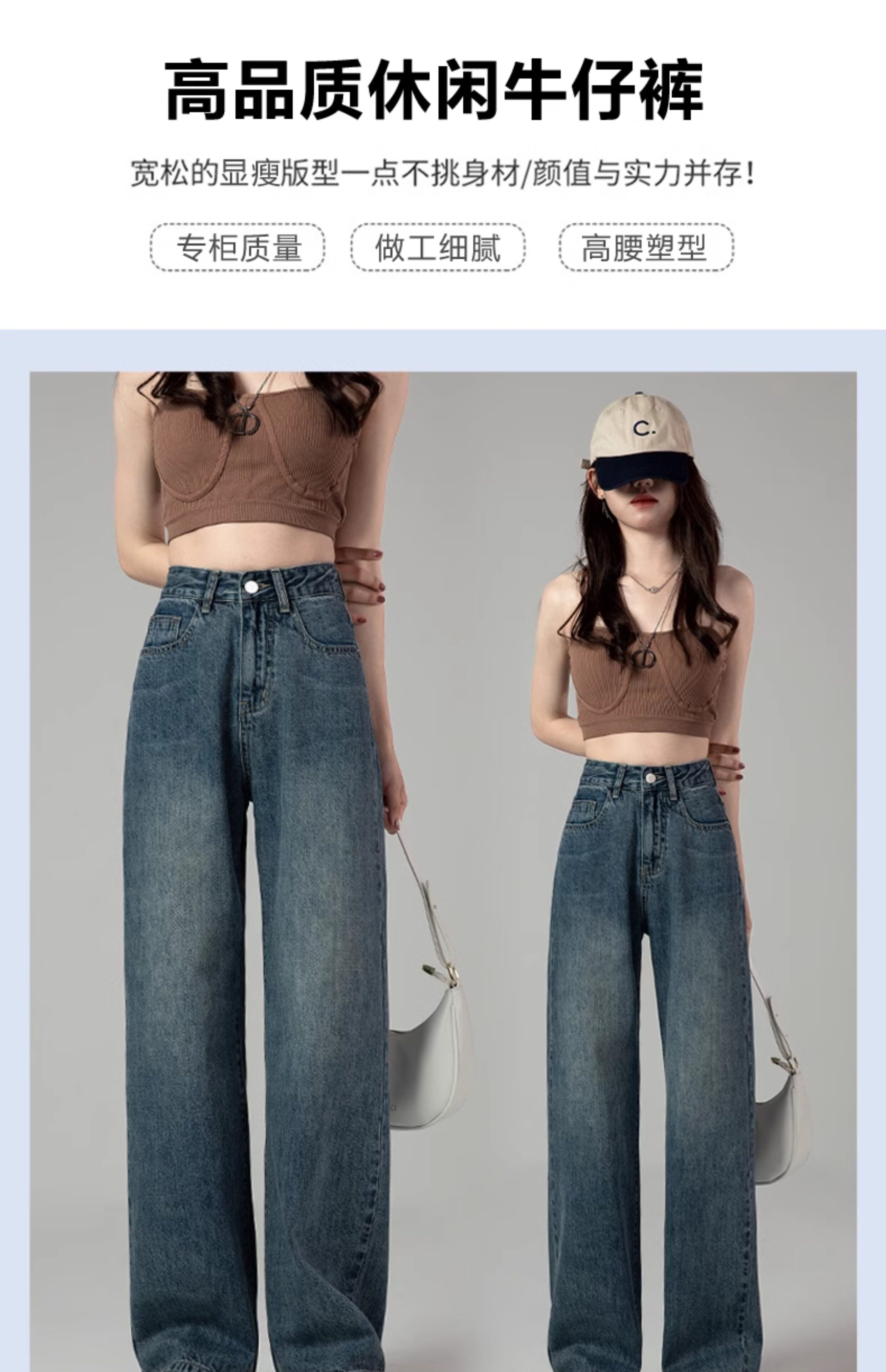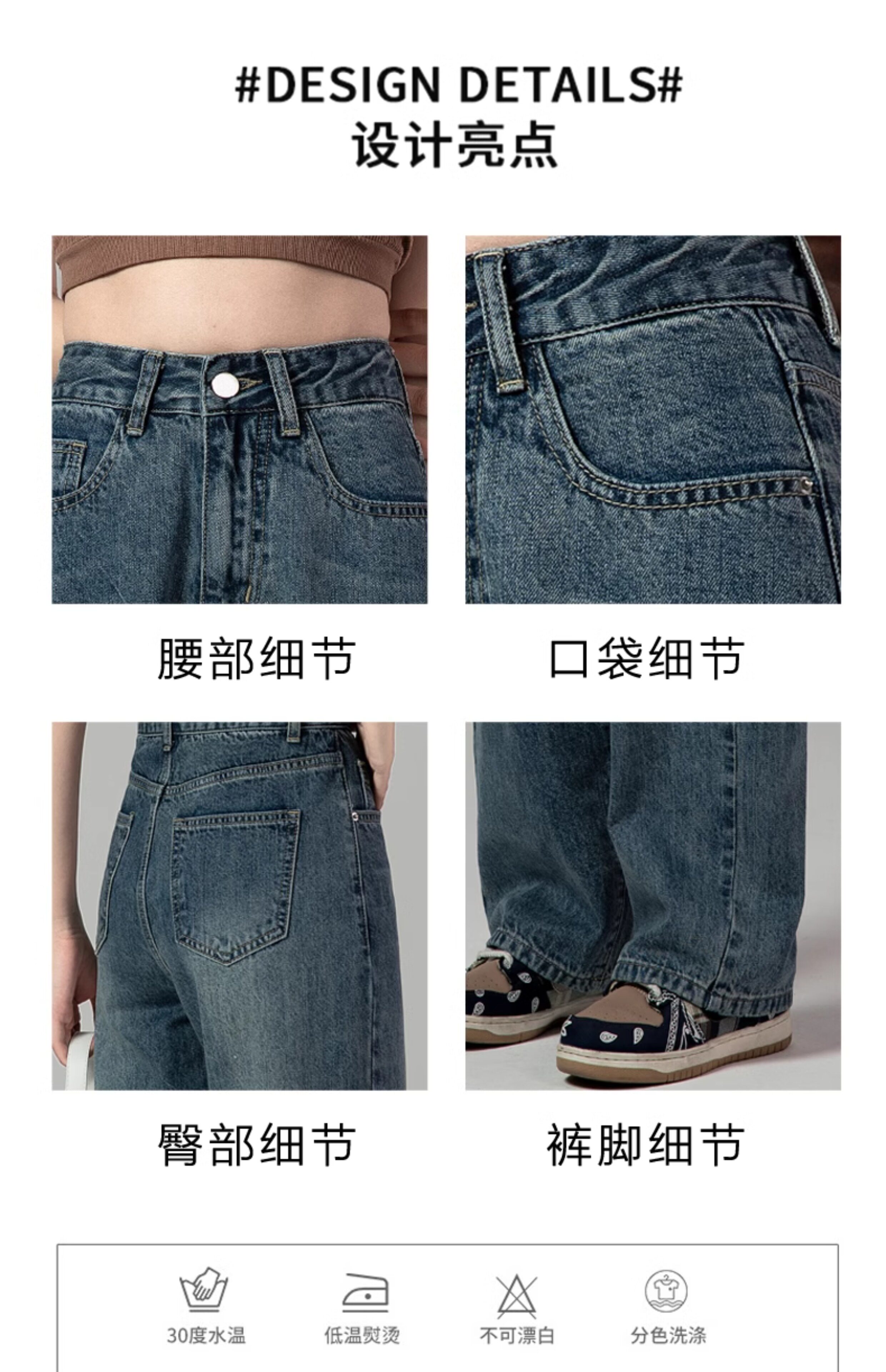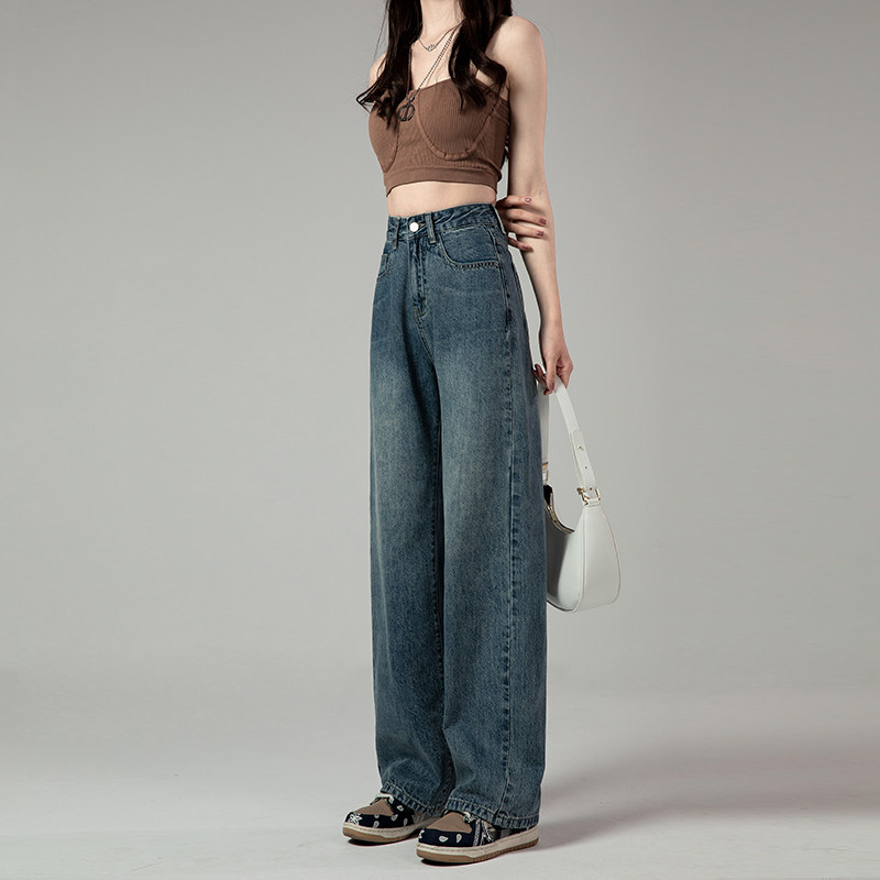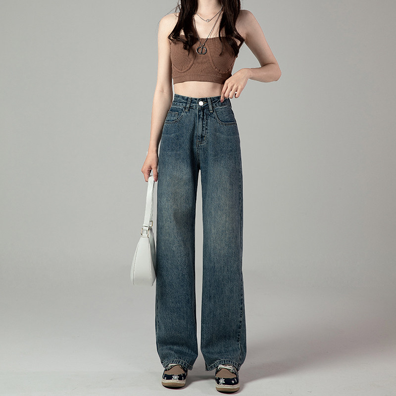 Ретро джинсы, весенние штаны, в американском стиле, высокая талия, свободный прямой крой