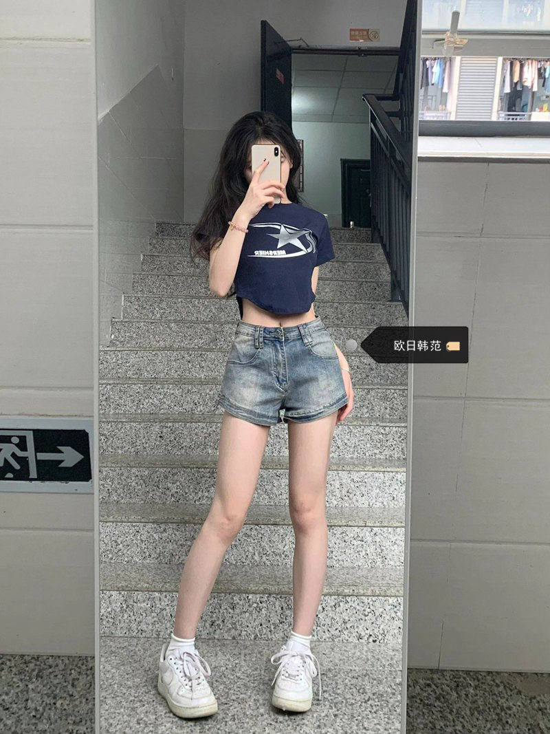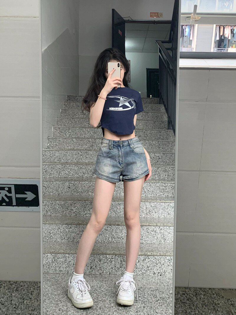 Ретро эластичная джинсовая юбка, шорты, приталенные штаны, большой размер, с акцентом на бедрах, А-силуэт