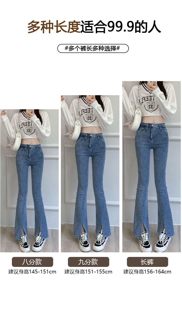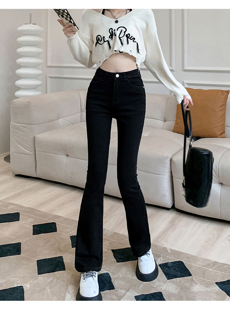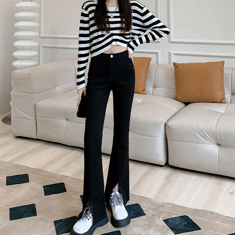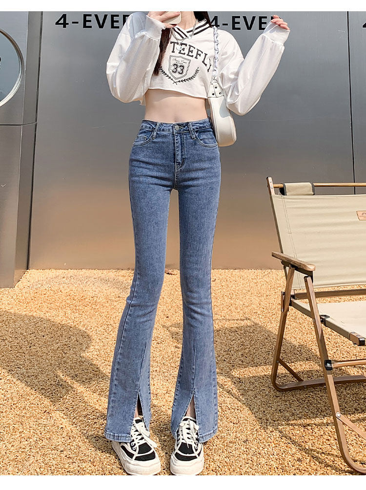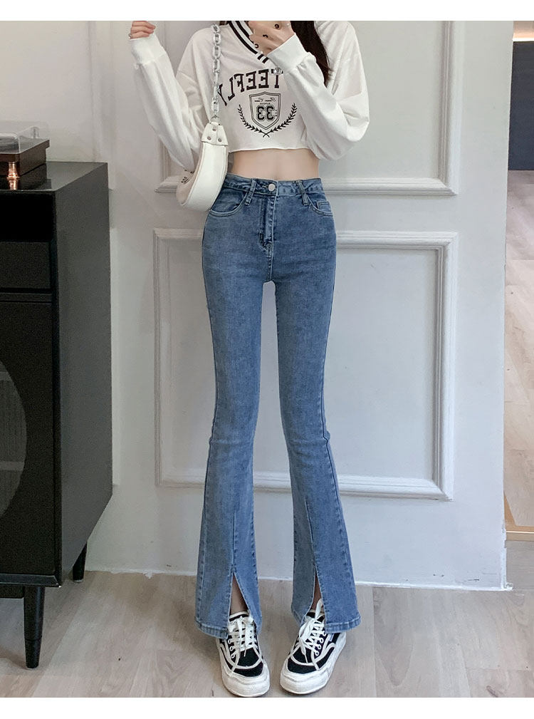 Осенние джинсы, штаны, приталенные штаны-клёш, 150см, подходит для подростков, высокая талия, облегающий крой