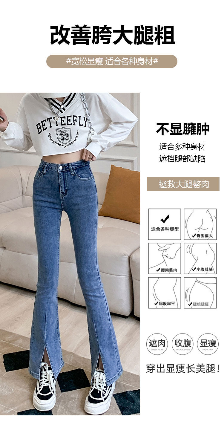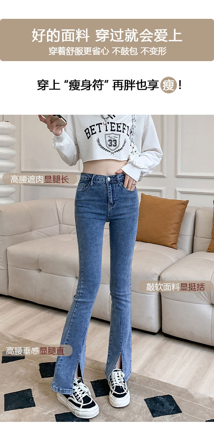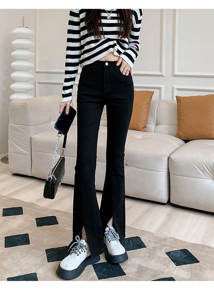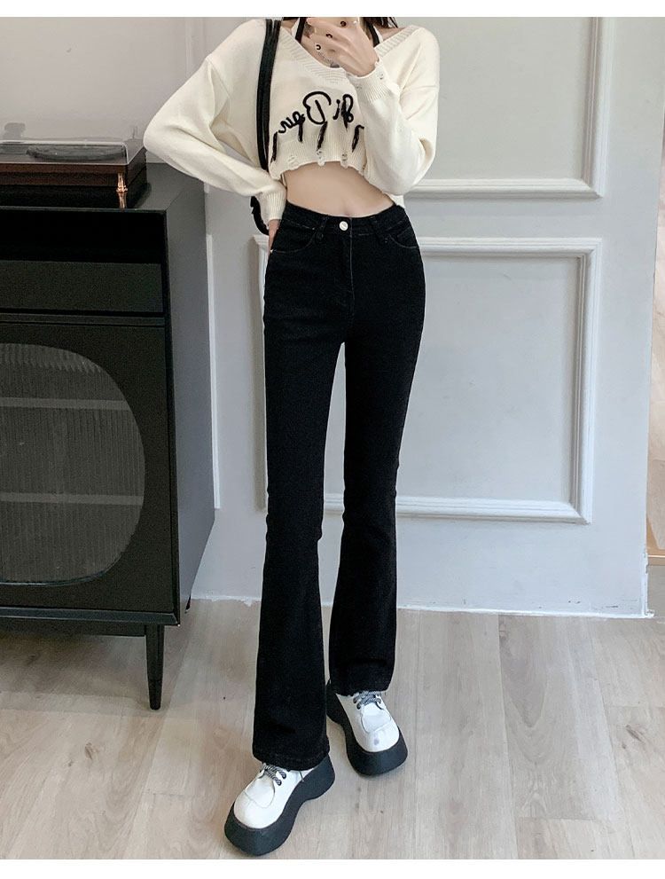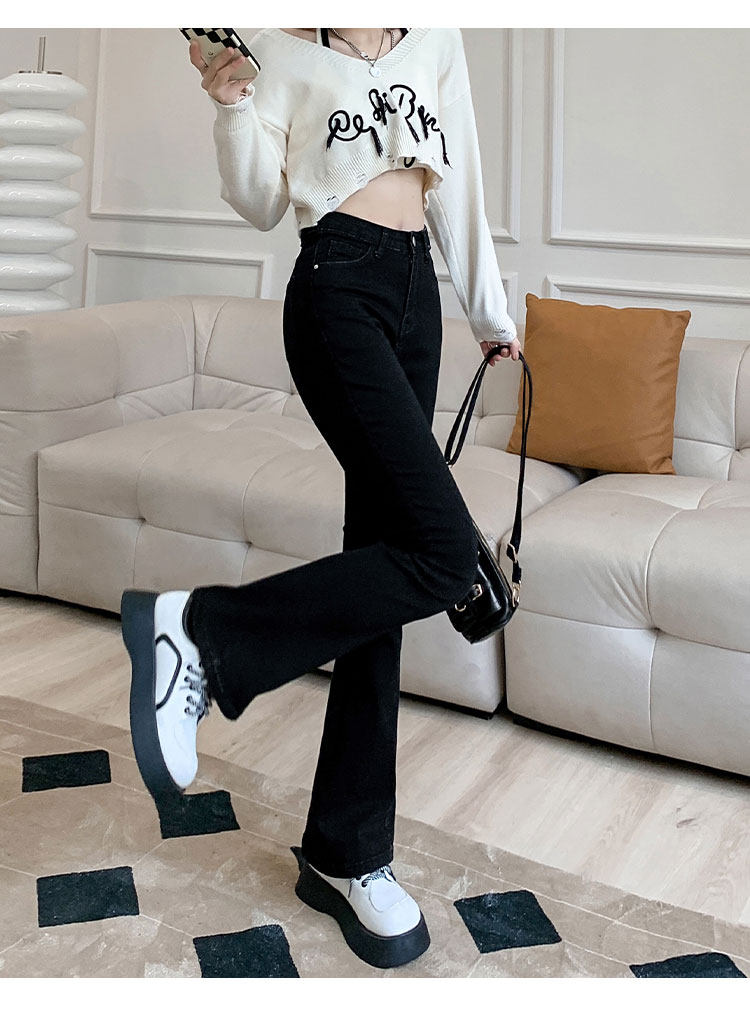 Осенние джинсы, штаны, приталенные штаны-клёш, 150см, подходит для подростков, высокая талия, облегающий крой