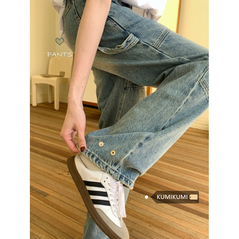 Ретро джинсы, весенние штаны, высокая талия, свободный прямой крой, по фигуре