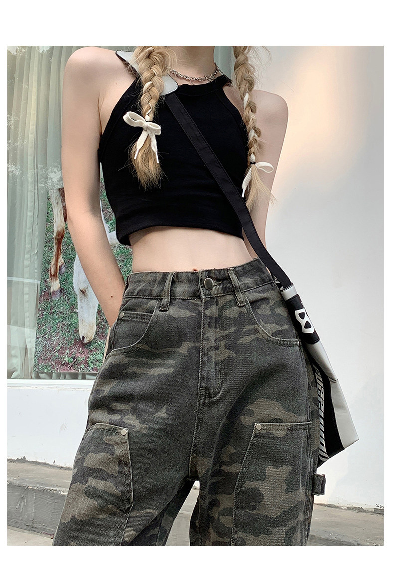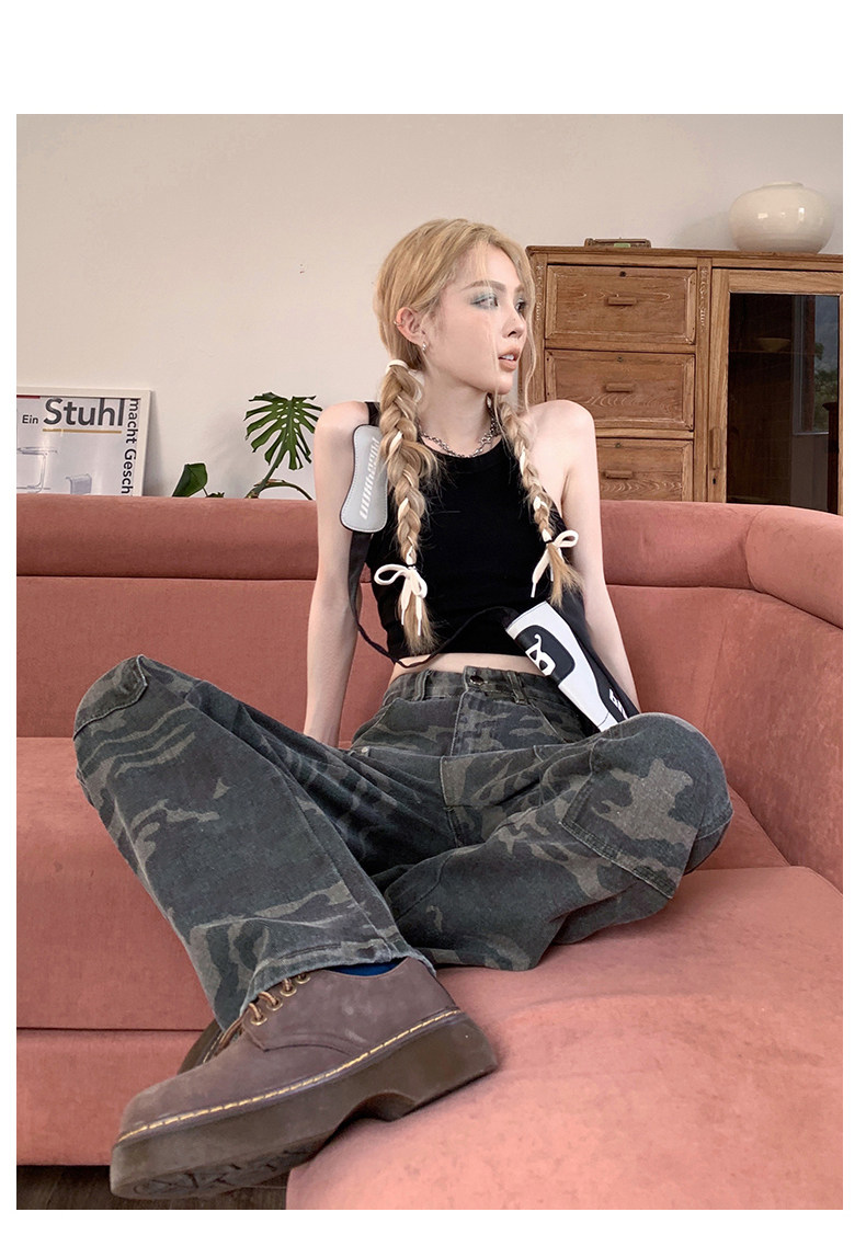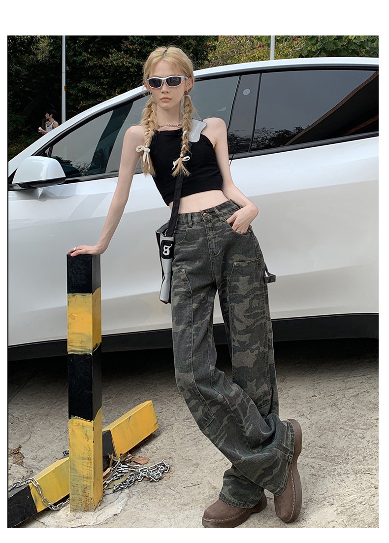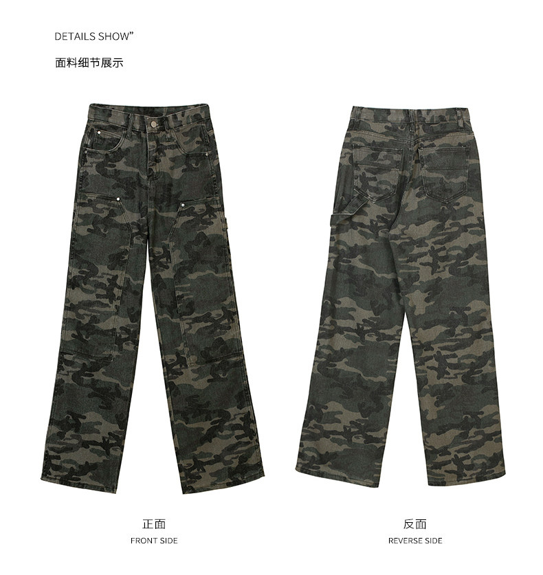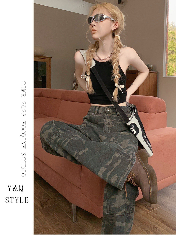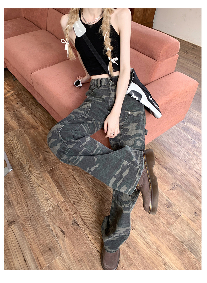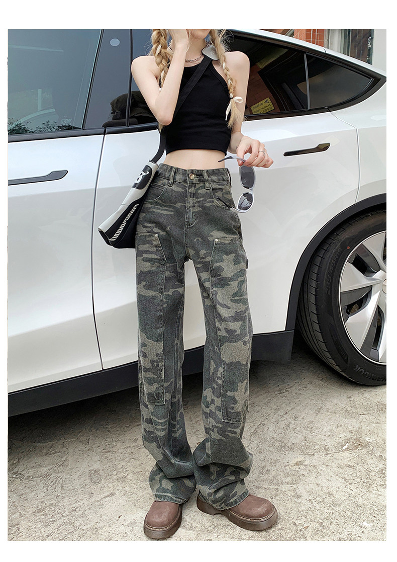 Камуфляжные осенние джинсы, приталенные трендовые штаны, в американском стиле, высокая талия, оверсайз, свободный прямой крой
