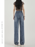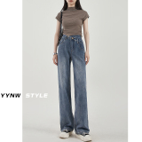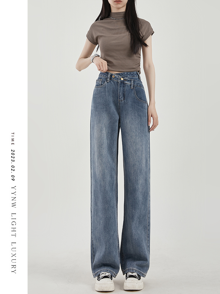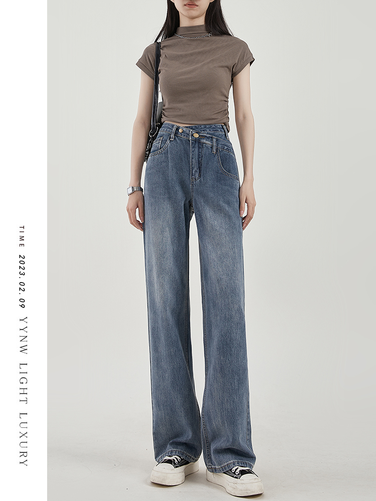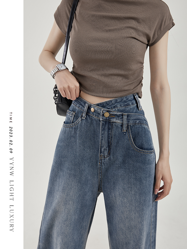 Осенние небольшие дизайнерские прямые свободные джинсы, штаны, высокая талия, коллекция 2023, тренд сезона, свободный крой