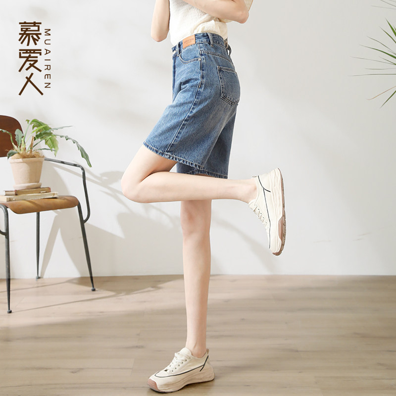 慕爱人 Джинсовая юбка, шорты, тонкие штаны, высокая талия, оверсайз, свободный крой, А-силуэт