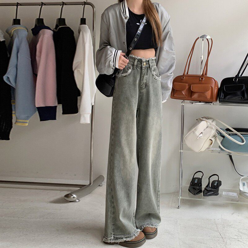 Осенние джинсы, дизайнерские штаны, подходит для подростков, тренд сезона, высокая талия, свободный прямой крой
