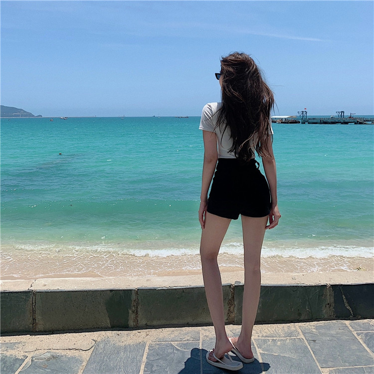 Белые джинсы, зимние тонкие штаны, черные шорты, А-силуэт, высокая талия