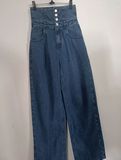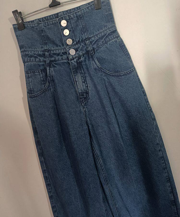 Женские синие штаны для отдыха, джинсы, высокая талия