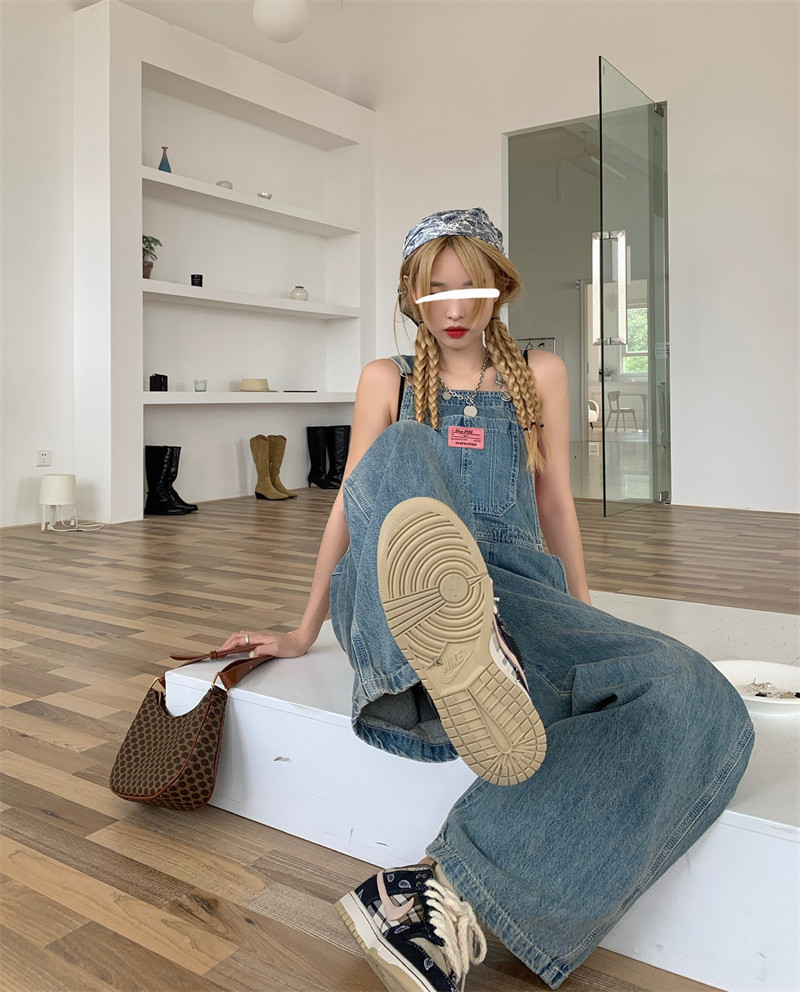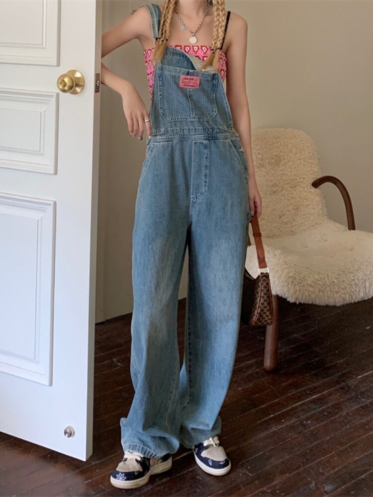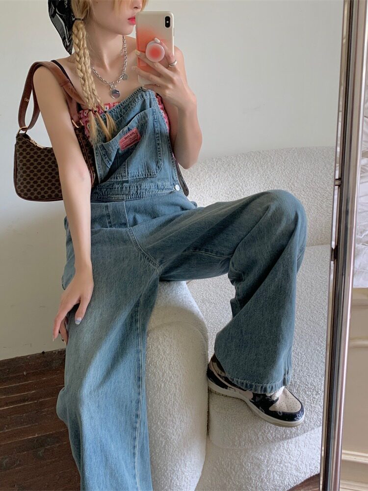 Ретро джинсовый летний комбинезон, летние штаны, популярно в интернете, оверсайз, по фигуре