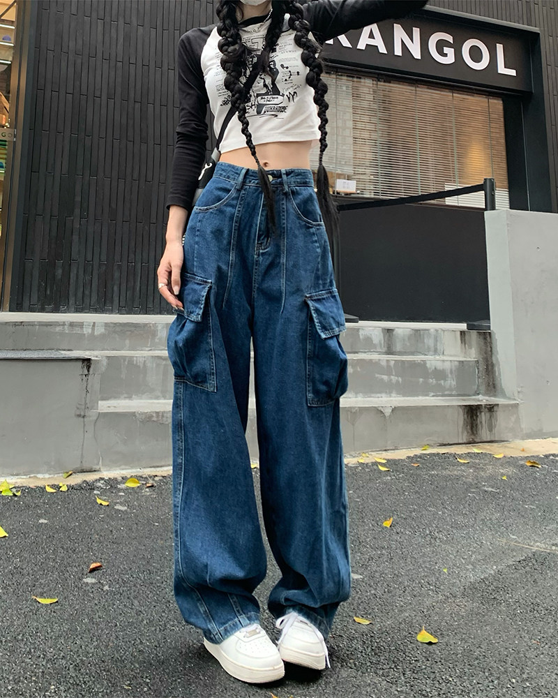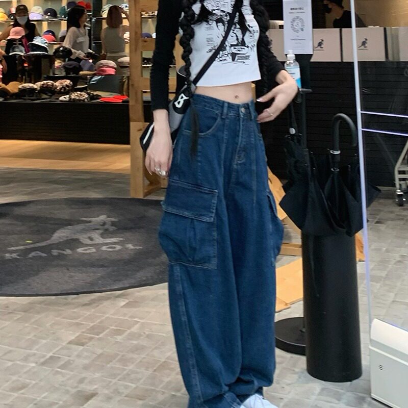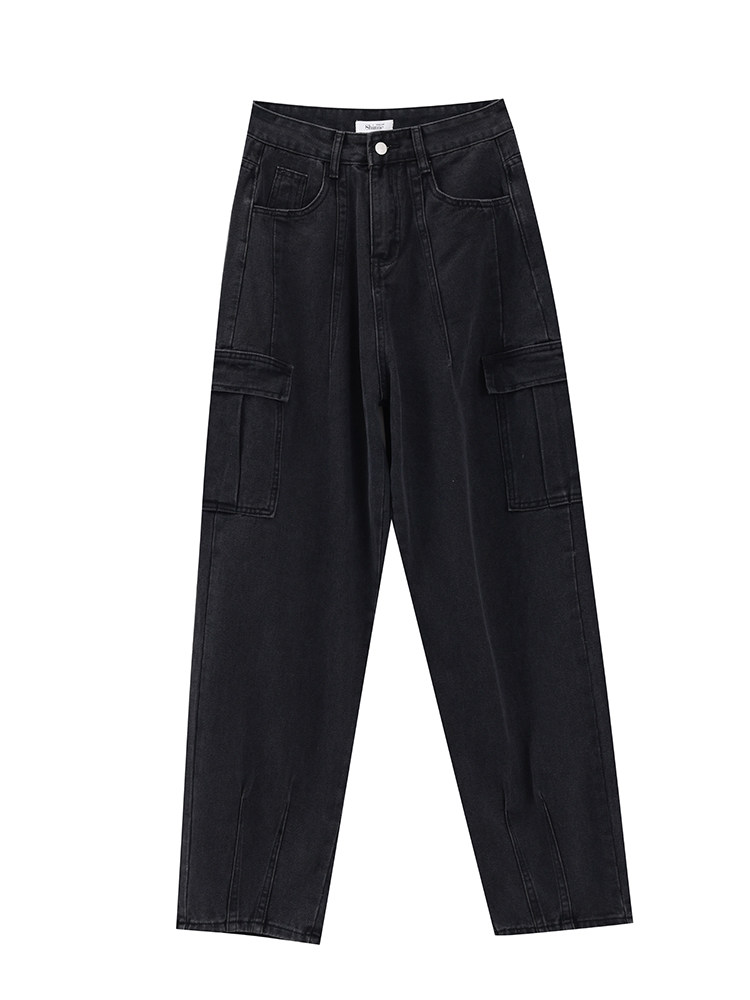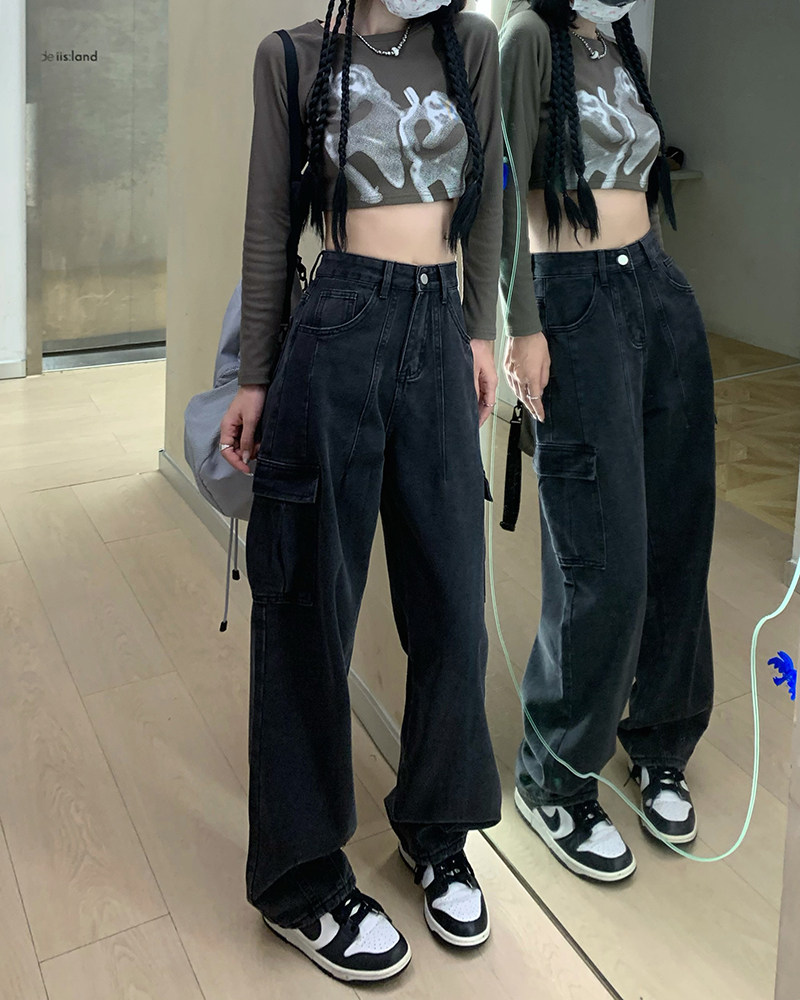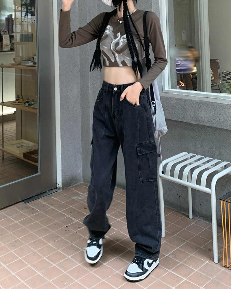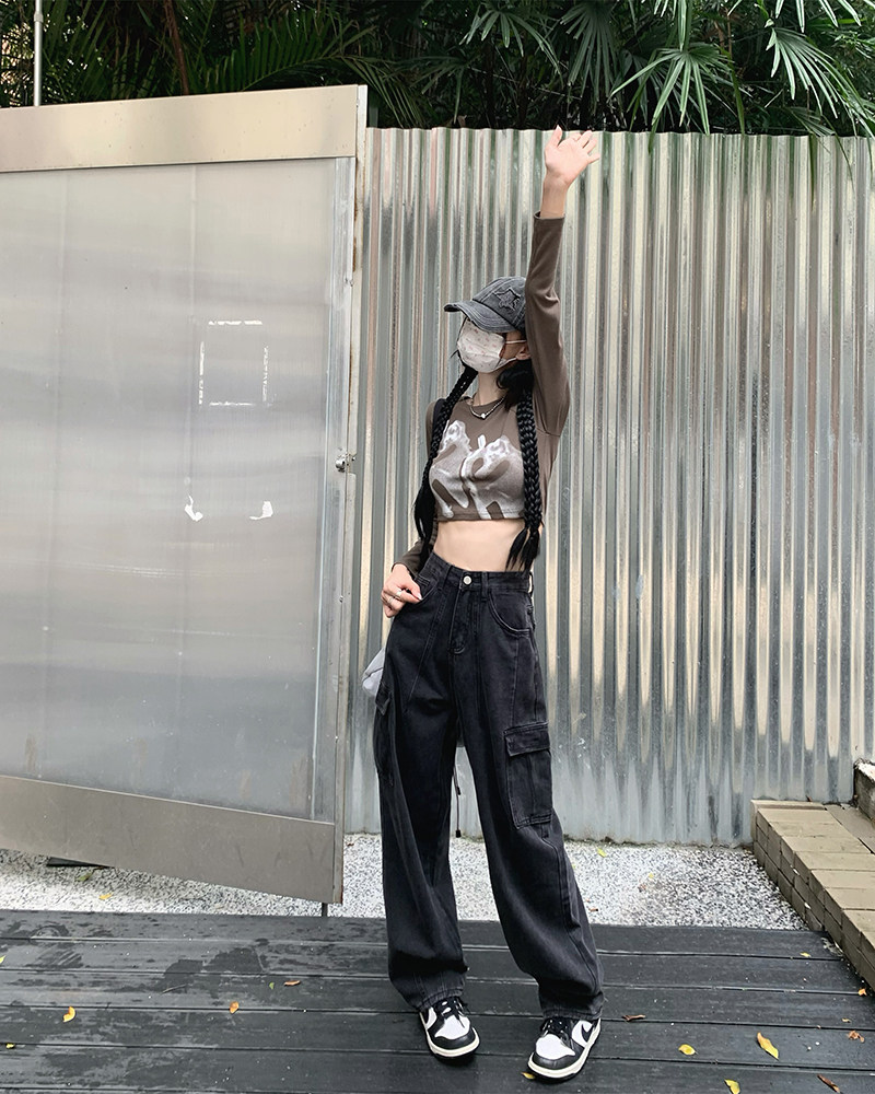 Джинсы, черные штаны, высокая талия, подходит для подростков, свободный крой