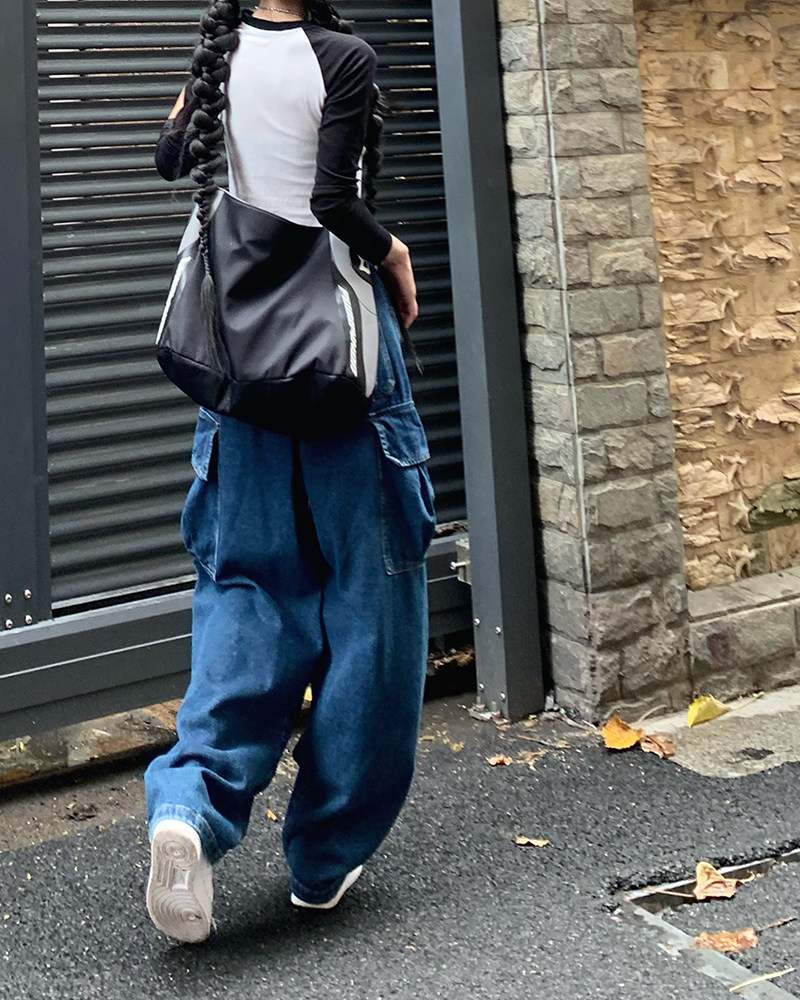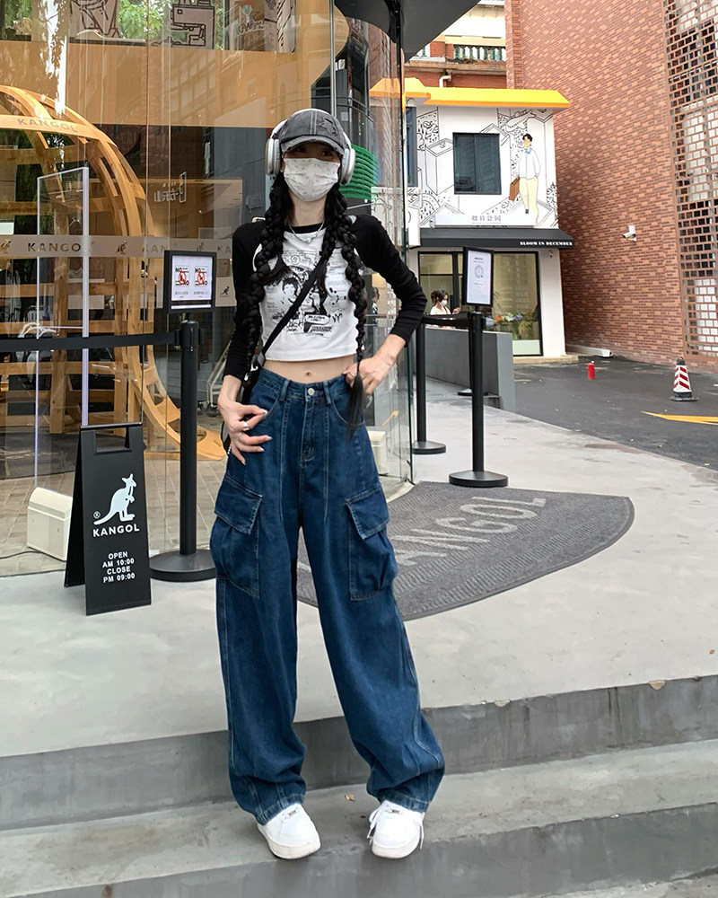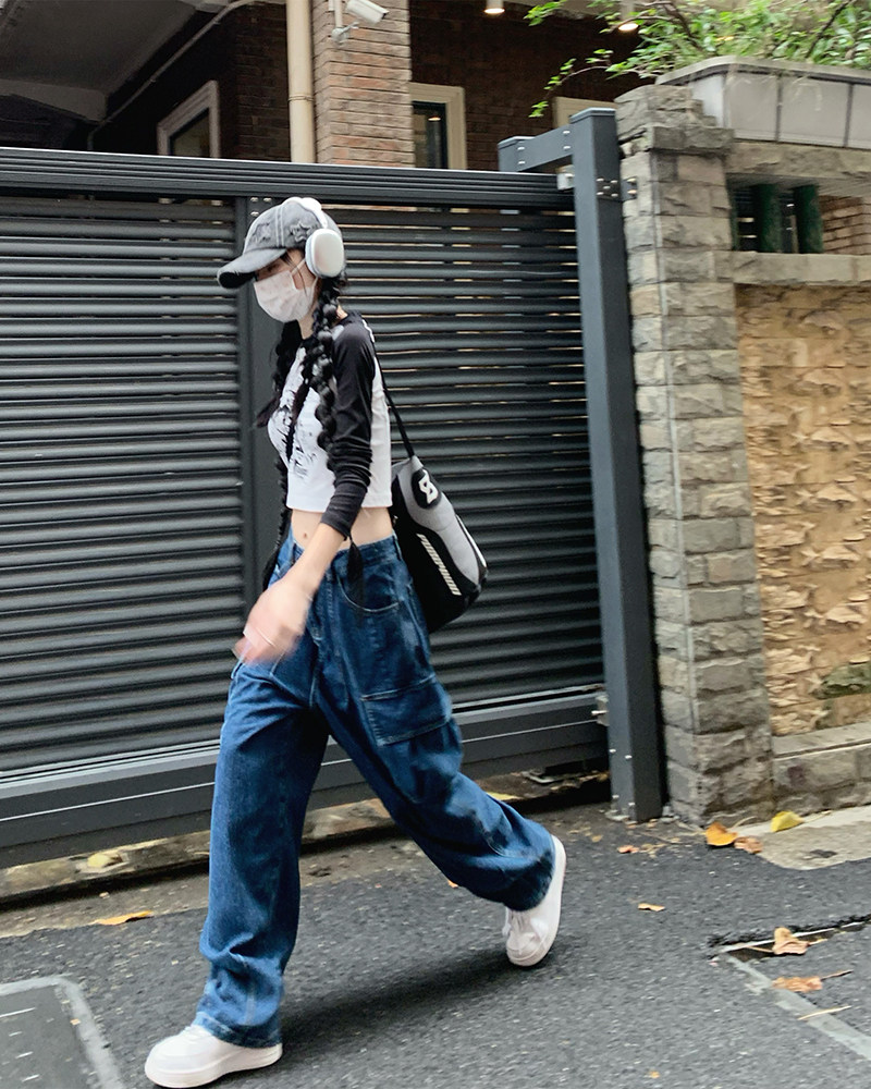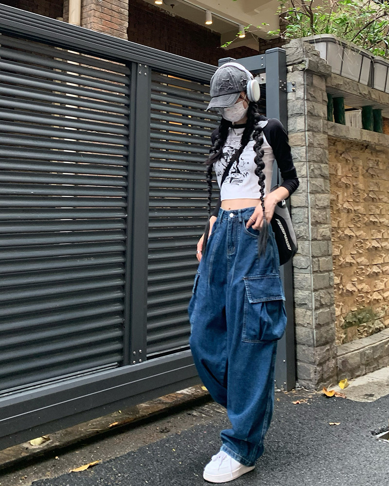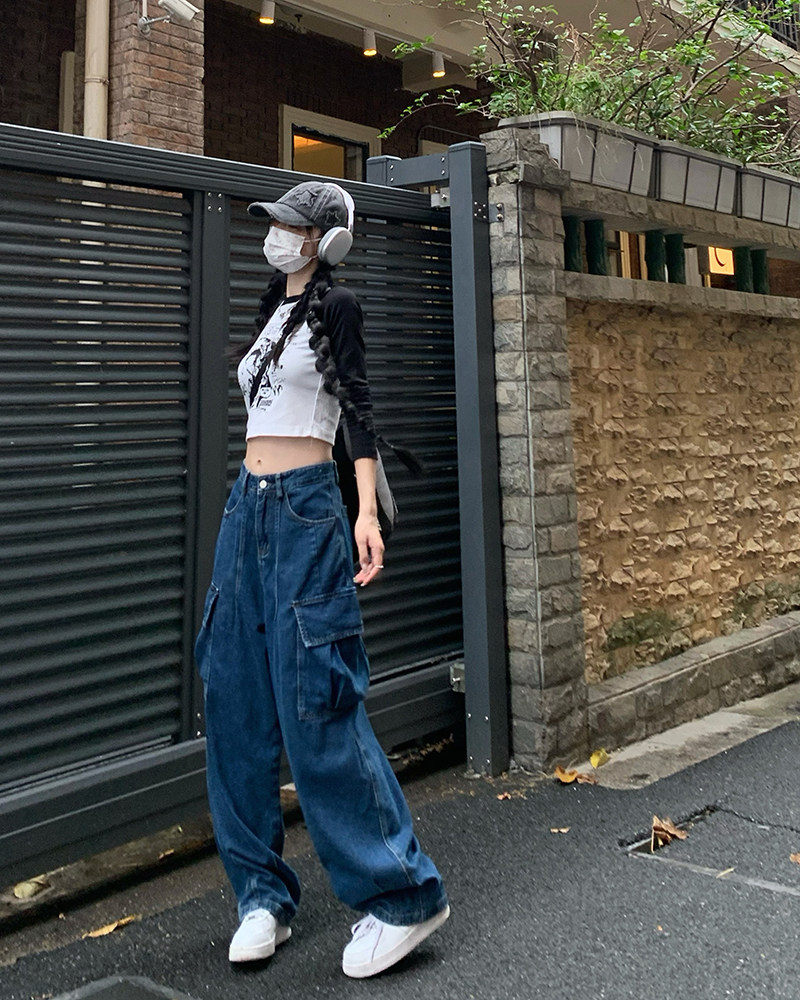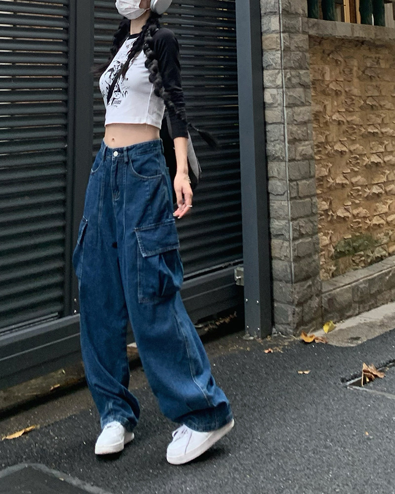 Джинсы, черные штаны, высокая талия, подходит для подростков, свободный крой
