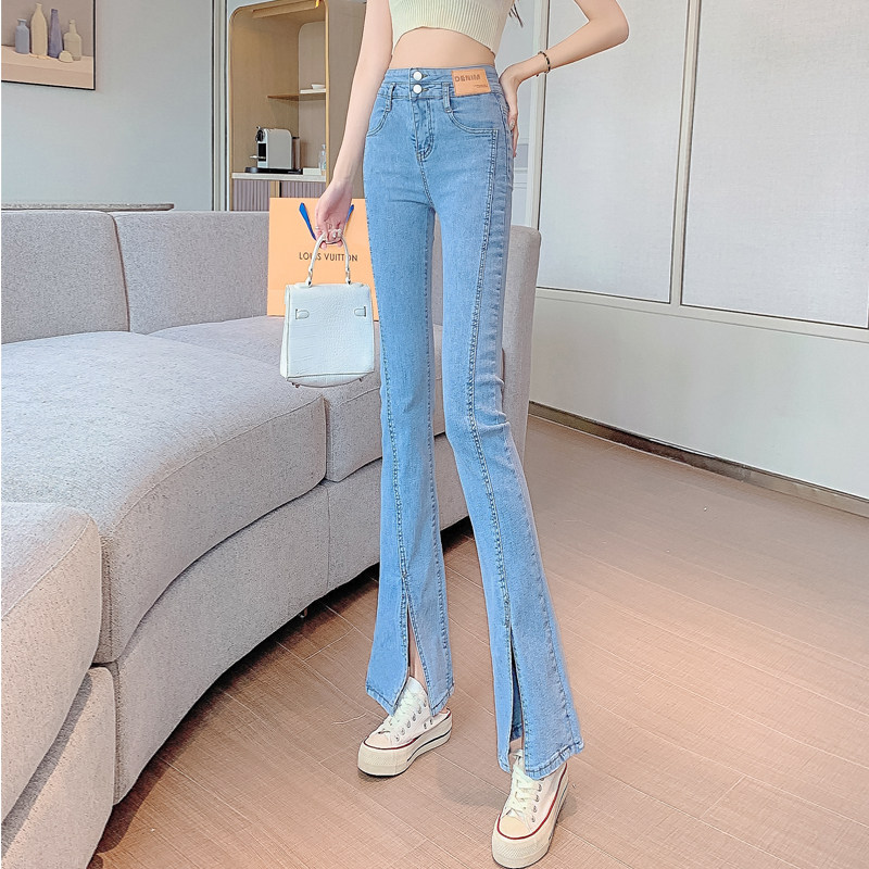 Джинсовые тонкие джинсы, штаны, комплект, штаны-клёш, для формы тела «груша», свободный крой