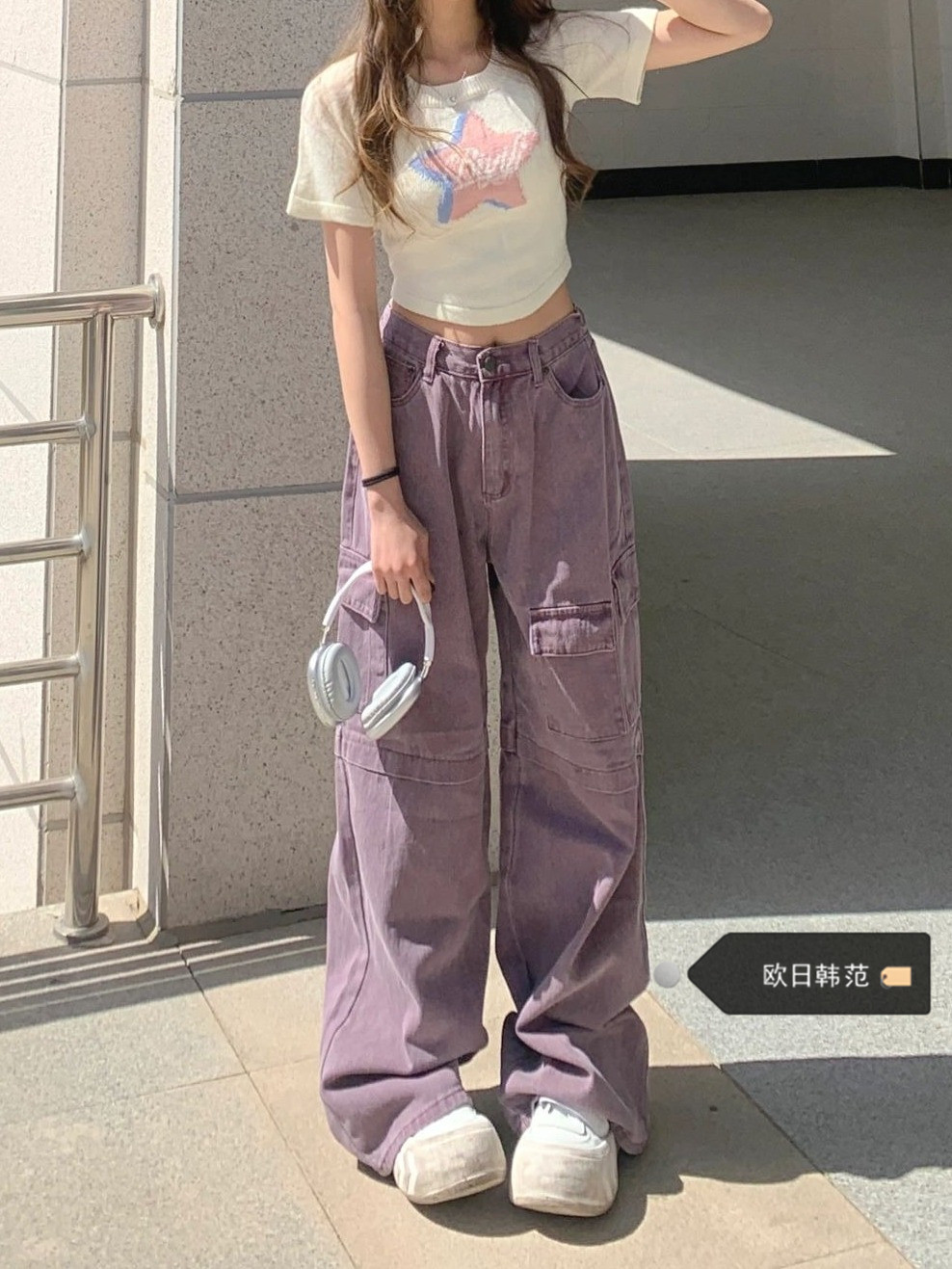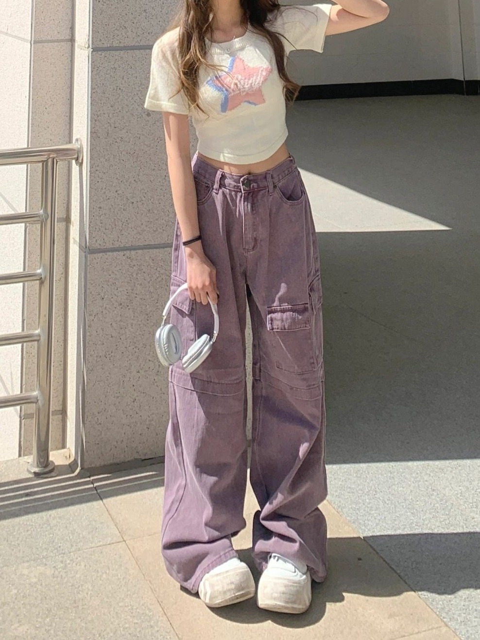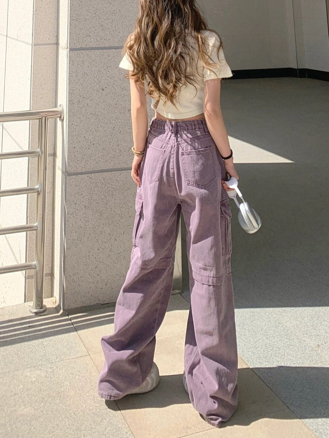 Ретро сиреневая униформа медсестры, весенние джинсы, летние штаны, большой размер, в американском стиле, высокая талия, свободный крой