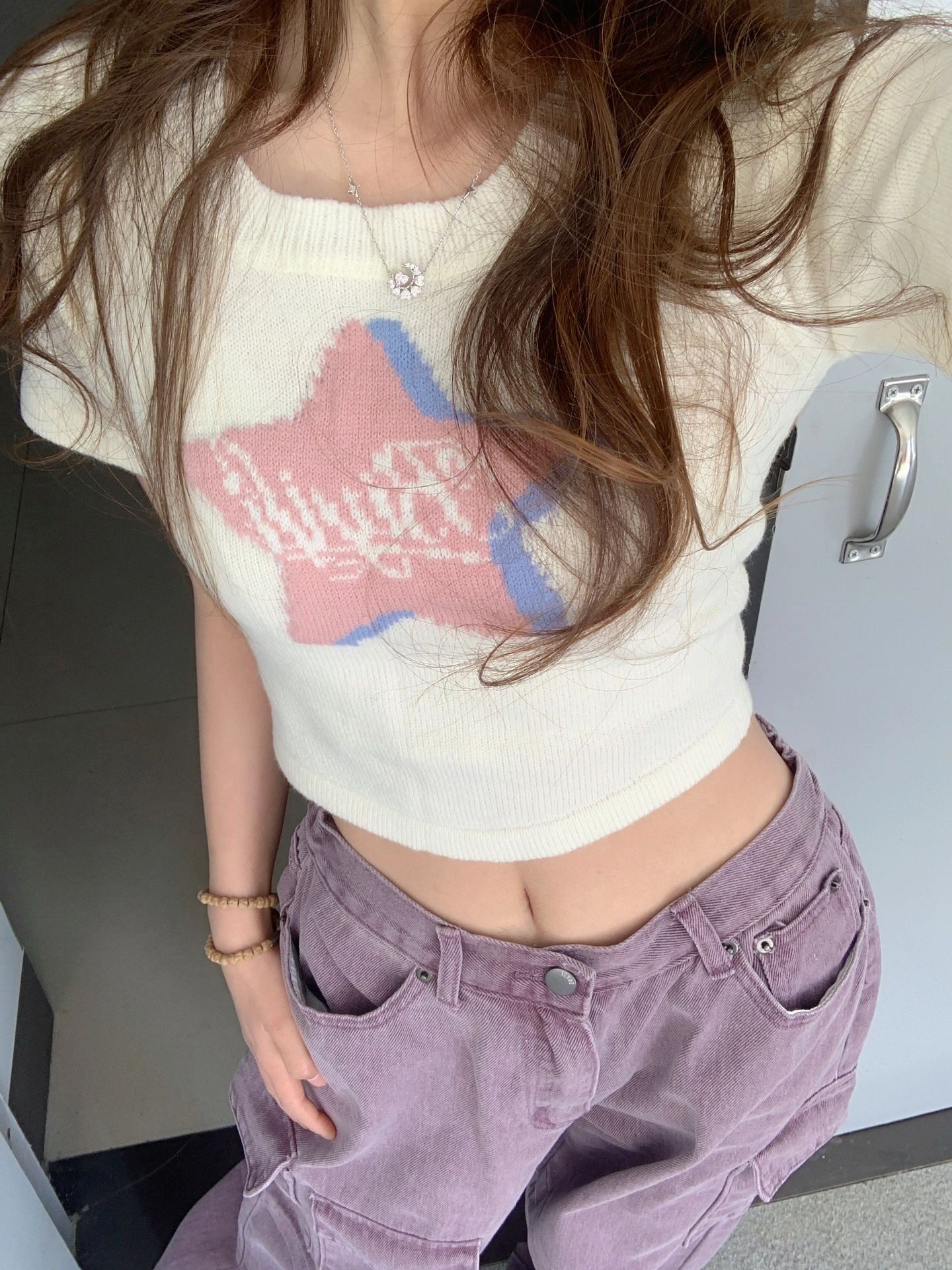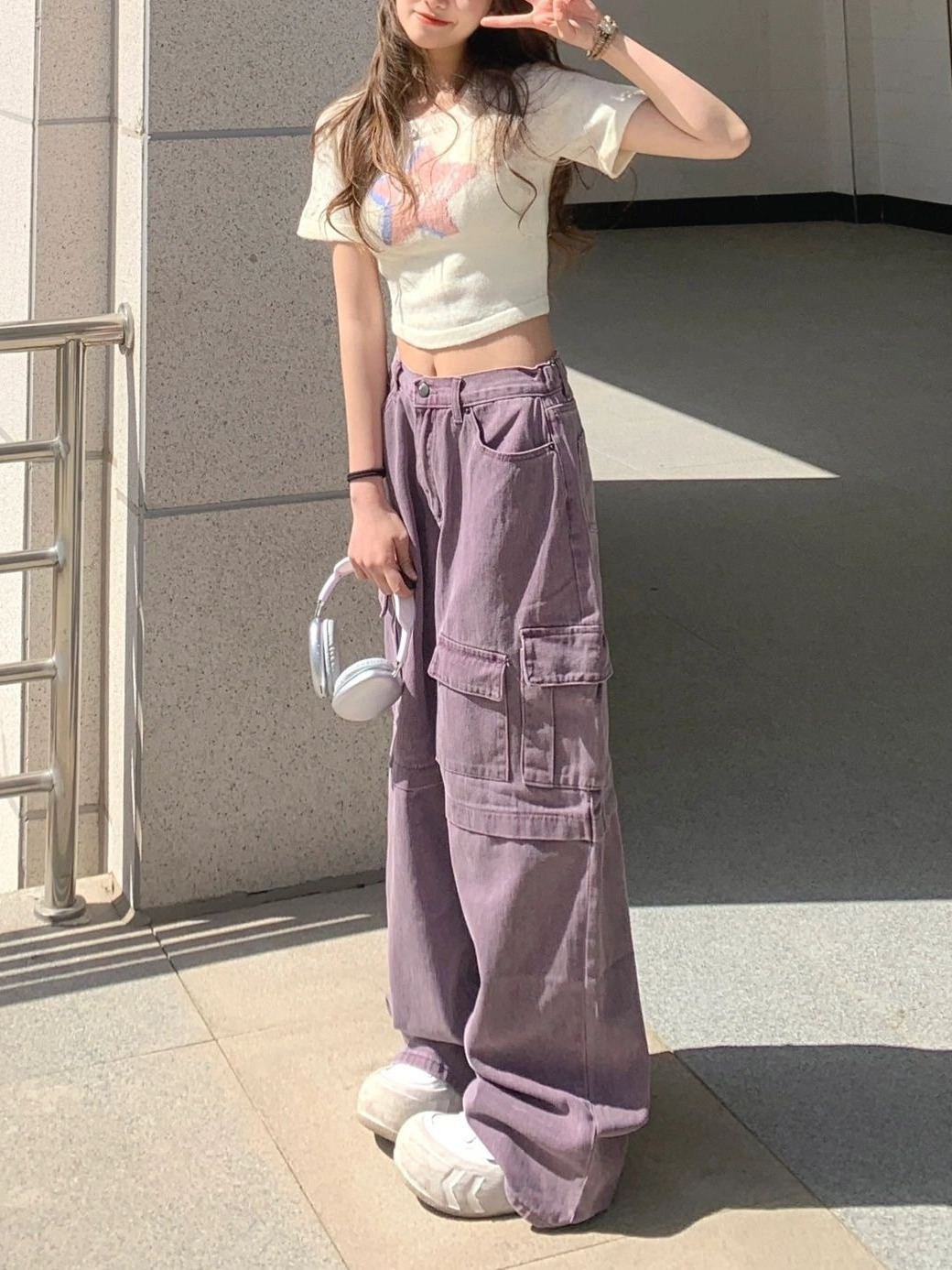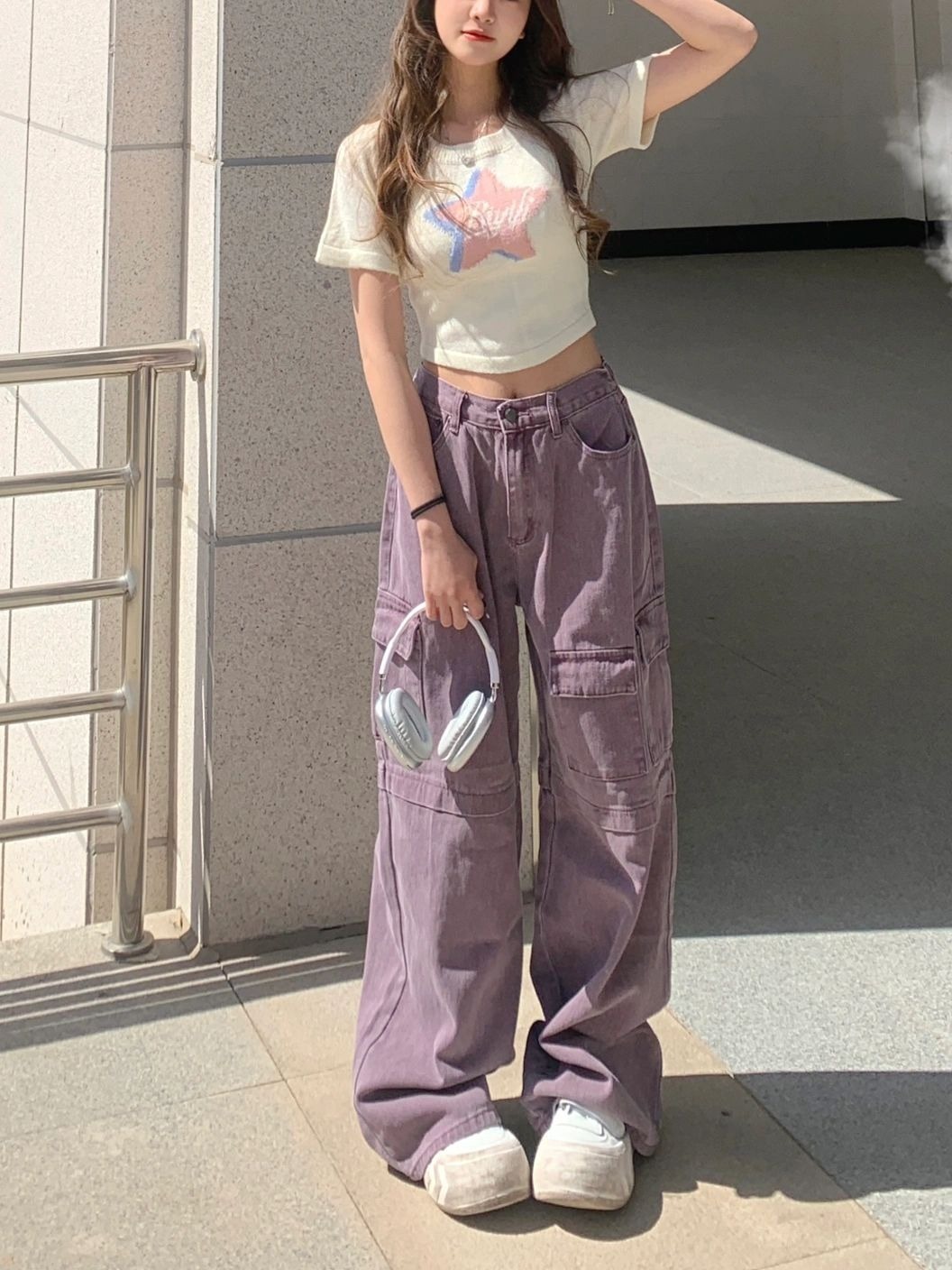 Ретро сиреневая униформа медсестры, весенние джинсы, летние штаны, большой размер, в американском стиле, высокая талия, свободный крой