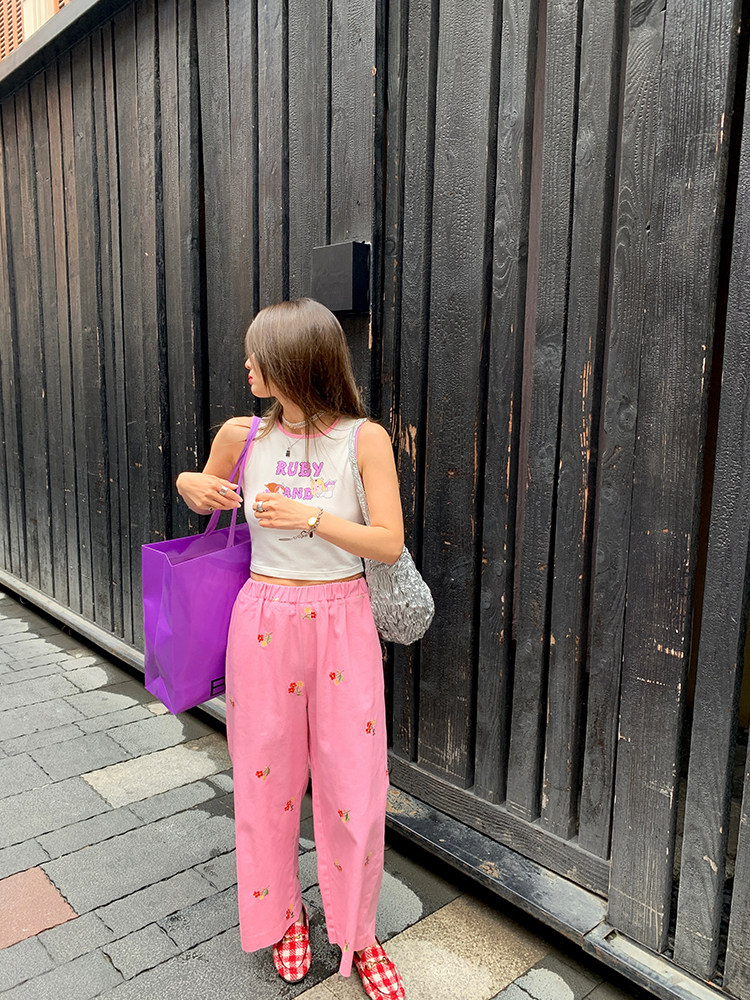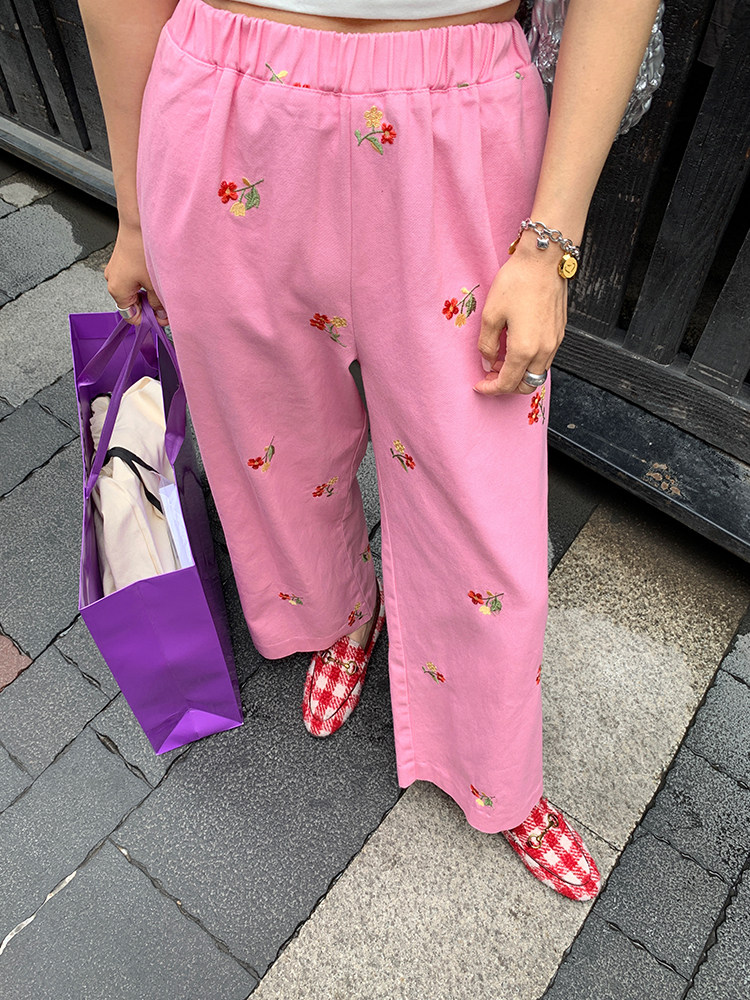Осенние джинсы, розовые дизайнерские штаны, 2024 года, с вышивкой, эластичная талия, тренд сезона