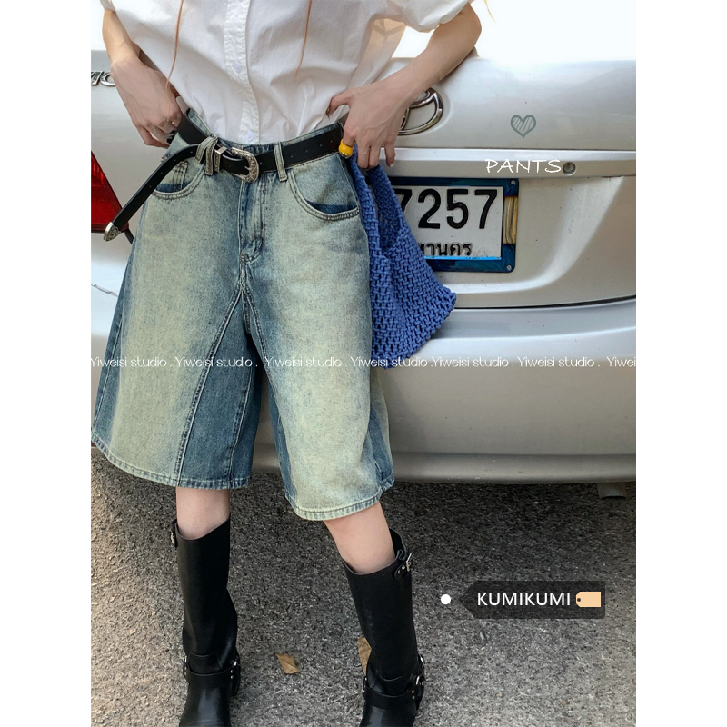 Синие ретро летние джинсы, штаны, шорты, высокая талия, свободный прямой крой