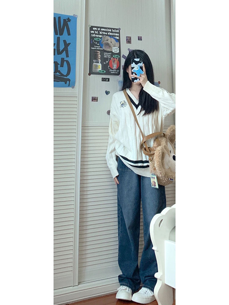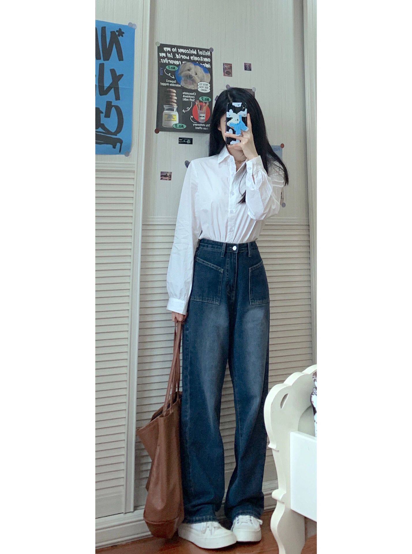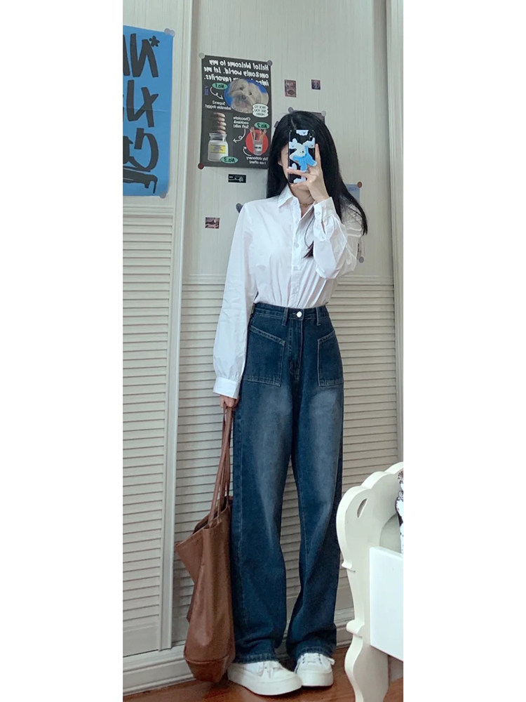 Синие прямые свободные джинсы, осенние штаны, свободный прямой крой, высокая талия, для формы тела «груша»