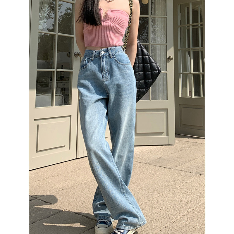 Осенние штаны, модные брендовые джинсы, высокая талия, свободный прямой крой, в корейском стиле
