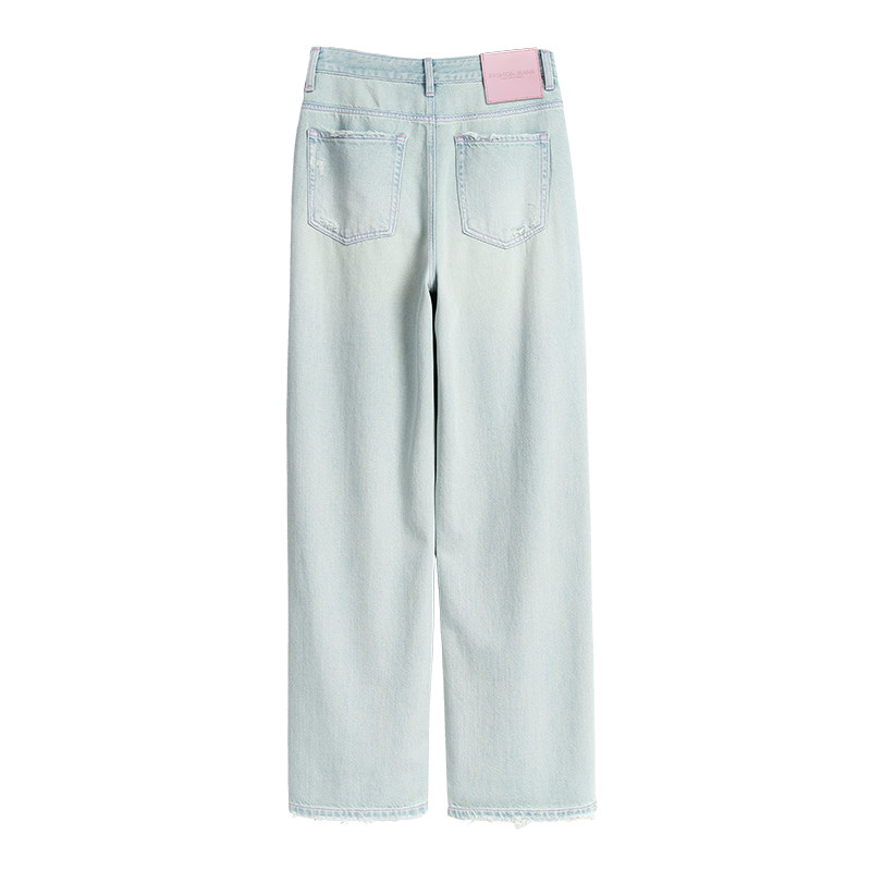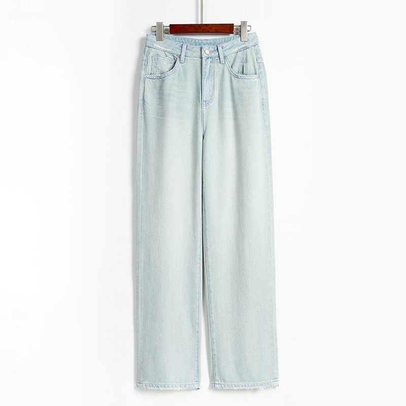 Синие тонкие прямые свободные джинсы, штаны, высокая талия, свободный крой