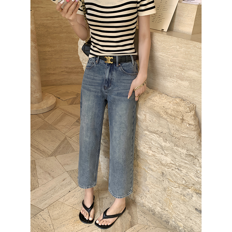 Тонкие приталенные джинсы, штаны, высокая талия, подходит для подростков, свободный прямой крой