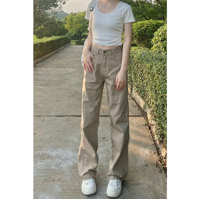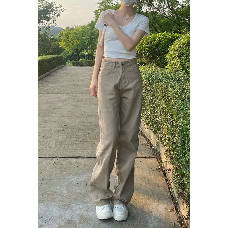 Осенние прямые свободные джинсы, штаны-клёш, приталенные штаны, в американском стиле, коллекция 2023, новая коллекция, подходит для подростков, свободный крой