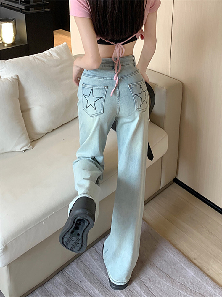 Синие весенние джинсы, дизайнерские приталенные штаны, в корейском стиле, тренд сезона, высокая талия